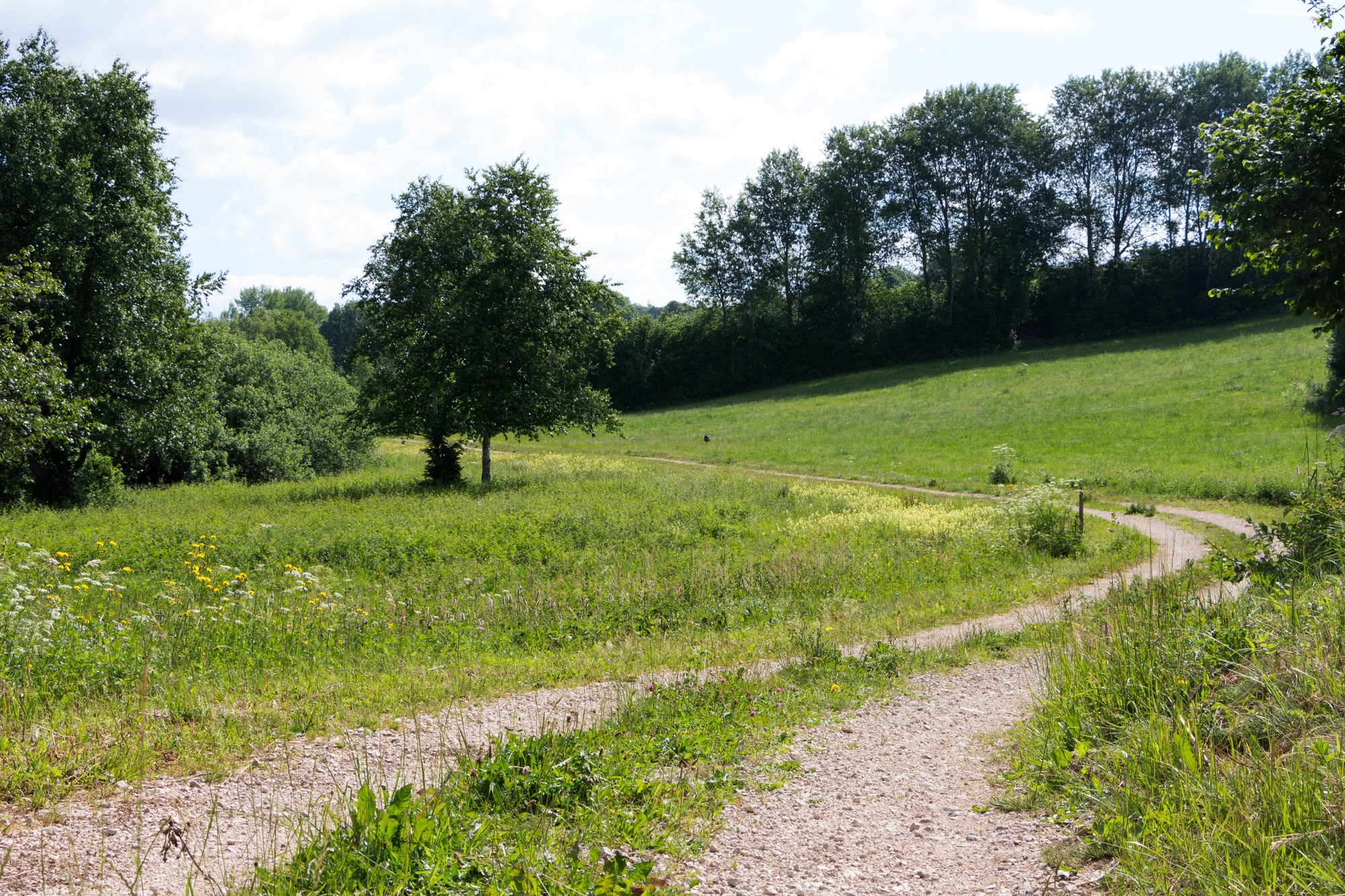L’itinéraire remonte le village (balisage jaune) par la rue Principale, dépasse la Fontaine-Ronde, et atteint la dernière maison.
