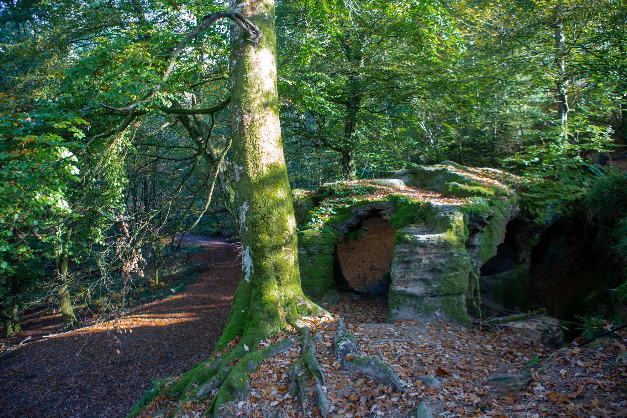Du parking de la GROTTE DE L’ERMITAGE, partir vers l’Est et rejoindre le croisement de sentiers au poteau Bois de Dole.