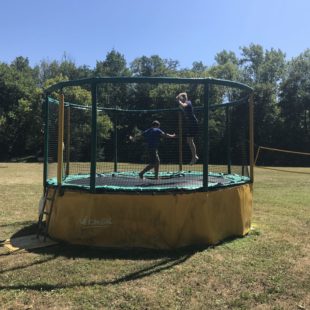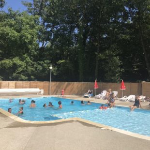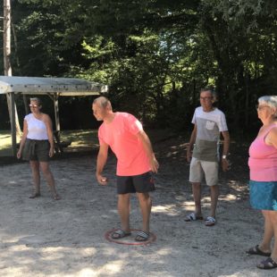 Je laisse Louise et ses complices à leurs occupations. Sur l’immense aire de jeux, Antonin et Maël testent le trampoline à coup de saltos avant, tandis qu’un petit groupe entame une partie de pétanque à l’ombre des arbres. Il fait encore un peu chaud pour profiter des deux terrains de beach-volley, mais le soir venu, un match s’organisera peut-être ? Les joueurs de pétanque ont le bel accent… des Hauts de France et viennent ici en famille : les parents, les enfants et les quatre grands-parents !