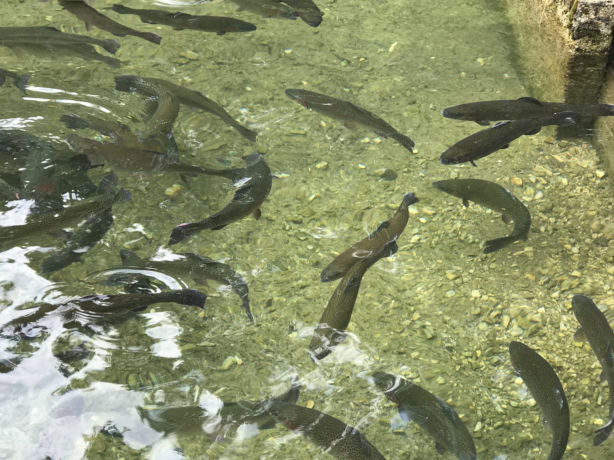 Dans leur Pisciculture des Rivières, Jean-Luc et Sylvie proposent des truites fraîches et de savoureux produits (rillettes, terrines, filets de truites…) à déguster sur place ou à emporter. En juillet et en août, de 10h à 19h, saisissez-vous d’une canne pour pêcher vous-même votre repas et le déguster sur place !