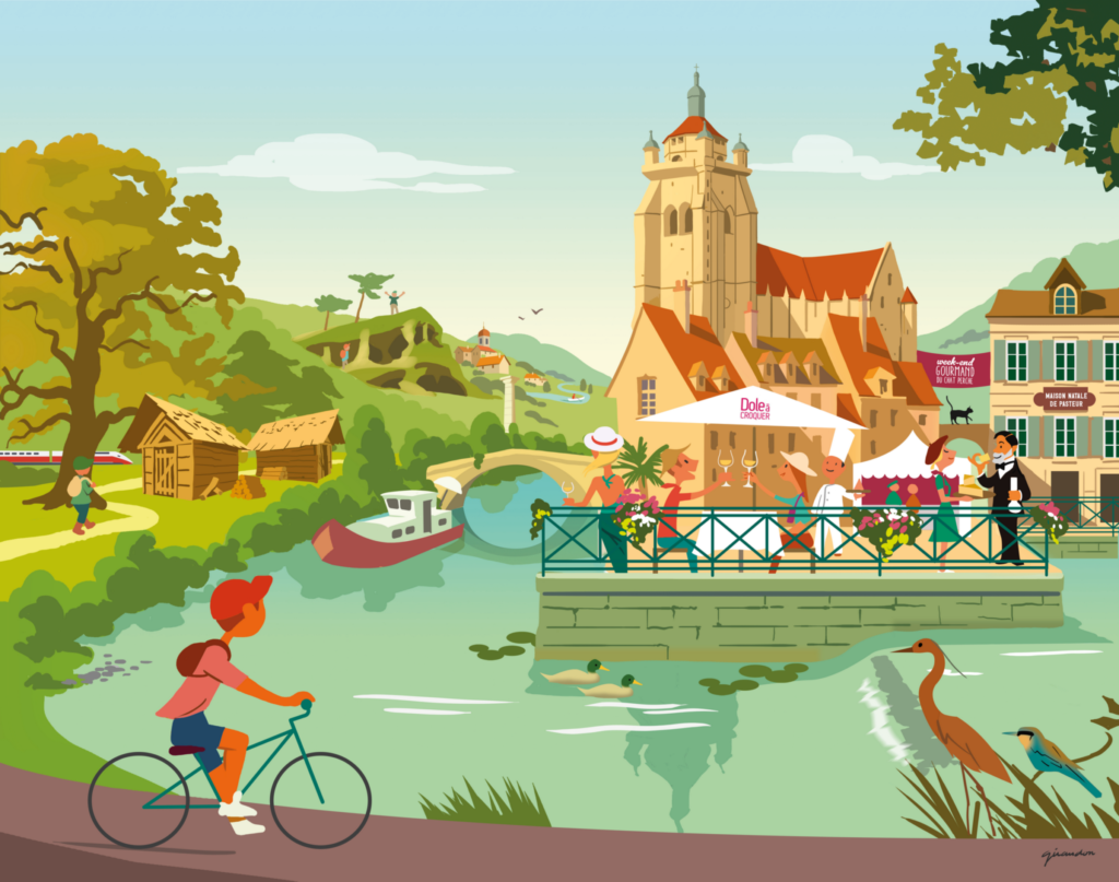 Mâconnais presque cinquantenaire, David Giraudon dessine depuis l’âge de 7 ans. Sa passion a évolué en métier au gré de formations pointues et rencontres marquantes, notamment avec Yann Arthus-Bertrand pour la réalisation du reportage dessiné du célèbre tournoi de Roland Garros pour le livre officiel. Il met au service d’institutions comme Jura Tourisme ses dons d’illustrateurs depuis plus de 20 ans. Parmi ses références les plus prestigieuses, l’Hôtel de la Marine, frère jumeau de l’Hôtel de Crillon Place de la Concorde à Paris, lui a confié la conception et les illustrations de son livret de visite à la suite de sa réouverture au grand public en 2021.