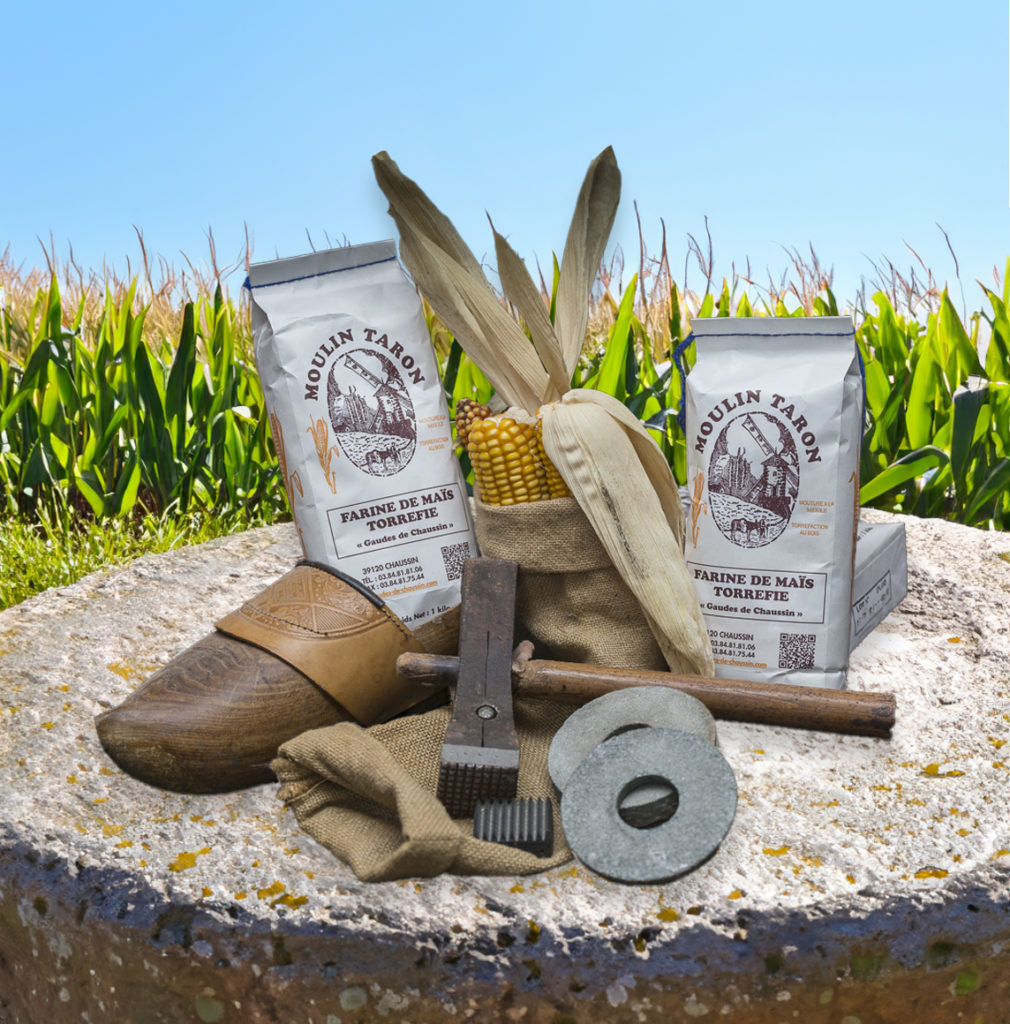 Le moulin Taron, à Chaussin, est le dernier moulin français produisant les gaudes. Les quoi ? « Les Gaudes » ont longtemps été le nom donné à une bouillie réalisée avec diverses farines, nourriture de base dans tout l’Est de la France. Mais aujourd’hui, ce terme curieusement au pluriel est réservé à la farine de maïs grillé. Cette farine qui fait l’orgueil de la Bresse jurassienne est fabriquée au moulin de la Famille Taron, meuniers depuis presque 100 ans.