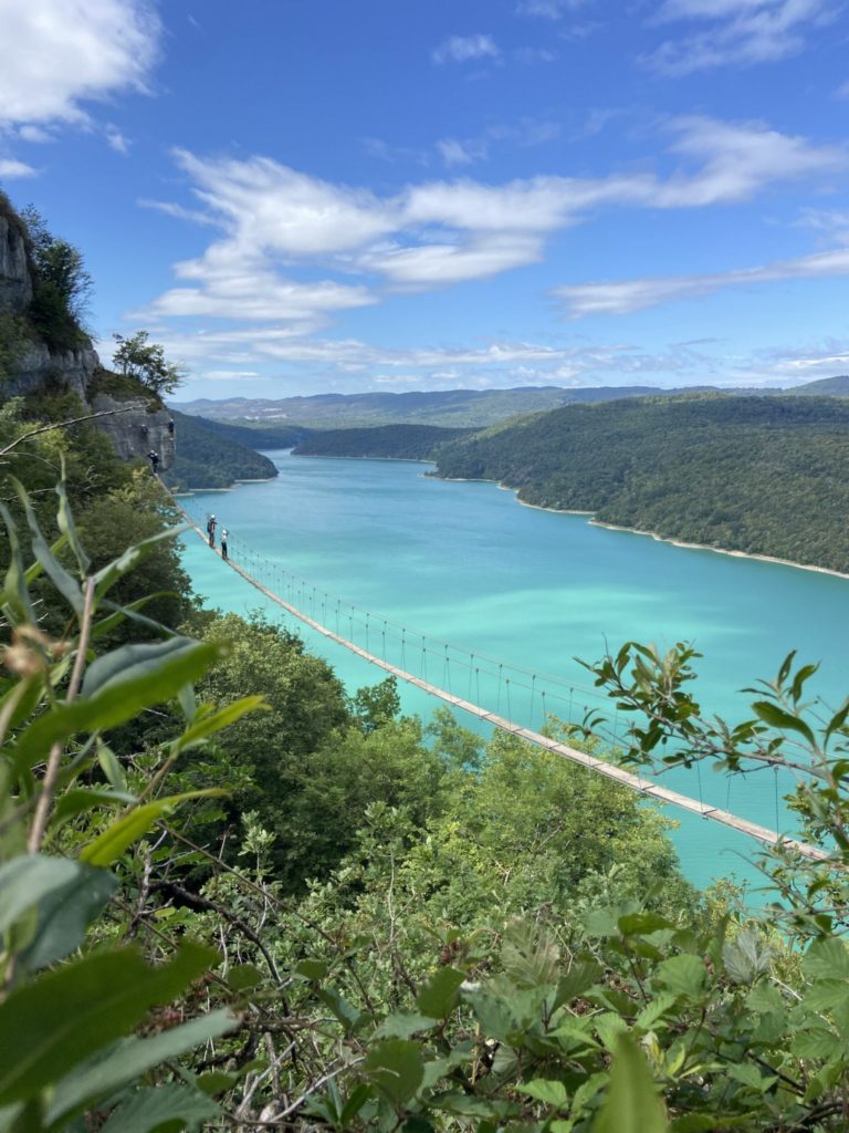 Avec ses 350 m de longueur, sa passerelle de 90 m, ses échelles et son pont de singe, la Via Ferrata du Regardoir, à Moirans-en-Montagne, vous offre des sensations fortes et une vue incroyable sur le lac de Vouglans.
