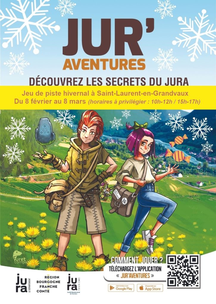 Prêt à relever le défi ? Connectez-vous sur l’appli Jur’Aventures, choisissez l’énigme « Chasse au trésor hivernale à Saint-Laurent-en-Grandvaux » et tentez de résoudre les nombreuses énigmes qui vous seront soumises !