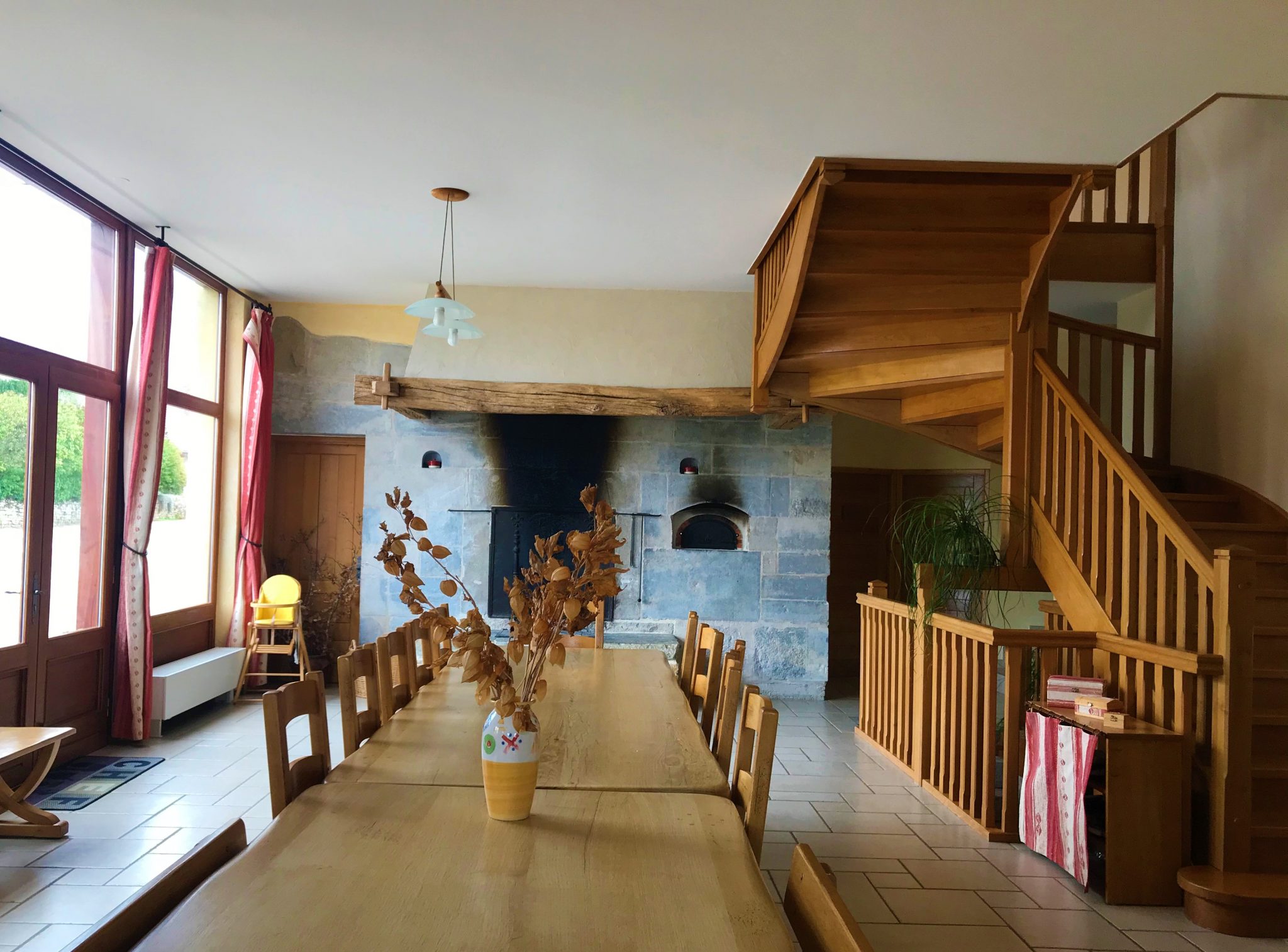 Les chambres d’hôtes et le gîte sont situés dans l’ancienne ferme familiale, totalement restaurée en préservant ses grands volumes, ses poutres de bois et sa charpente traditionnelle. Les enfants ont une salle de jeux à disposition avec des jouets pour tous les âges, quantité de livres et même une table de ping-pong… La grande salle de repas, avec son immense table en bois, a gardé sa belle cheminée d’antan. Partout la lumière inonde et les habitants restent lovés dans ce cocon douillet.