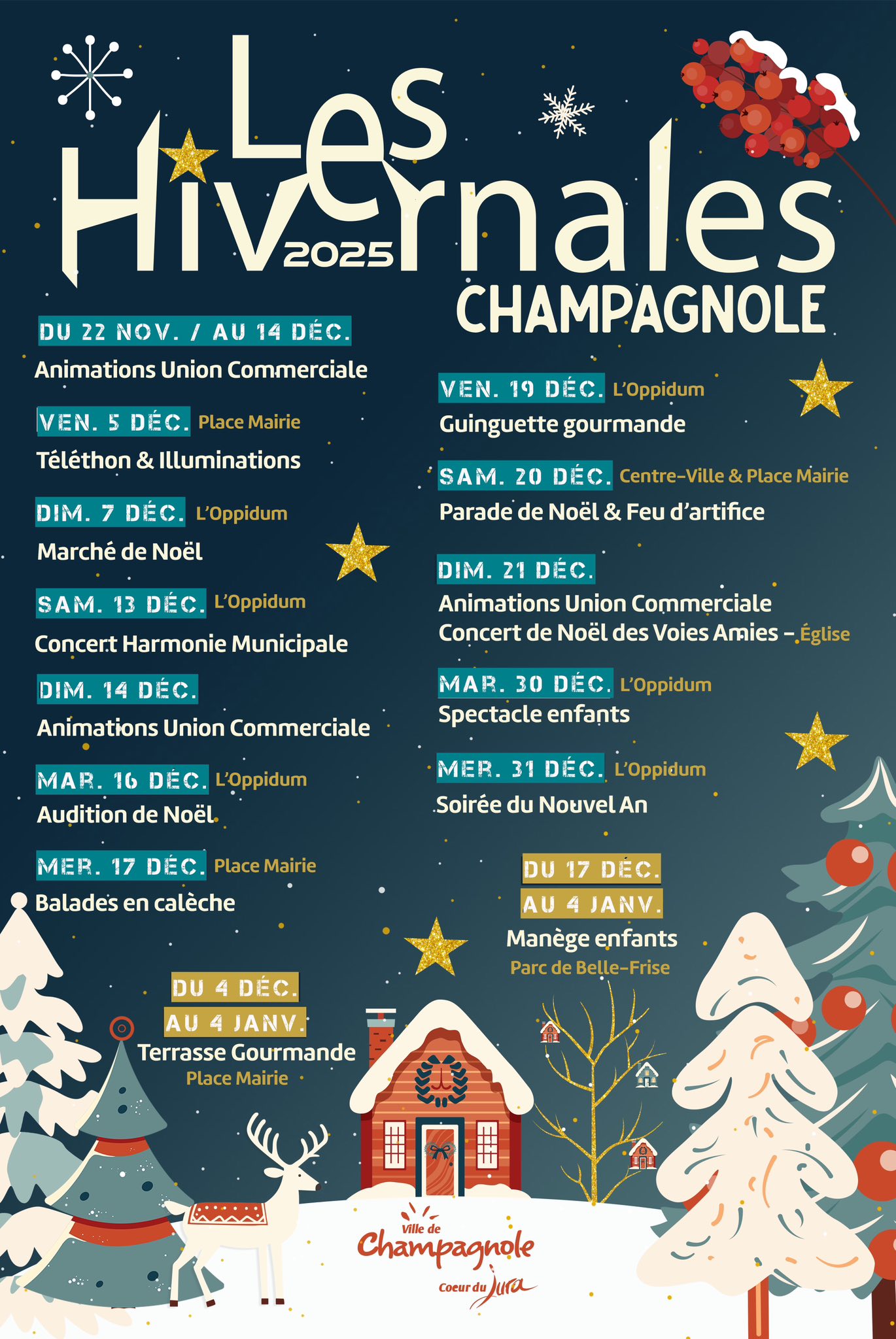 Durant tout le mois de décembre, Champagnole vous invite à entrer dans la féérie de Noël et à vivre intensément toutes les belles émotions de cette période enchantée de l’année. Au centre-ville. de nombreux moments festifs sont proposés. Bien plus que des animations, ces rendez-vous sont des occasions de créer du lien et de la mixité intergénérationnelle. Autant de surprises à consommer… sans modération !