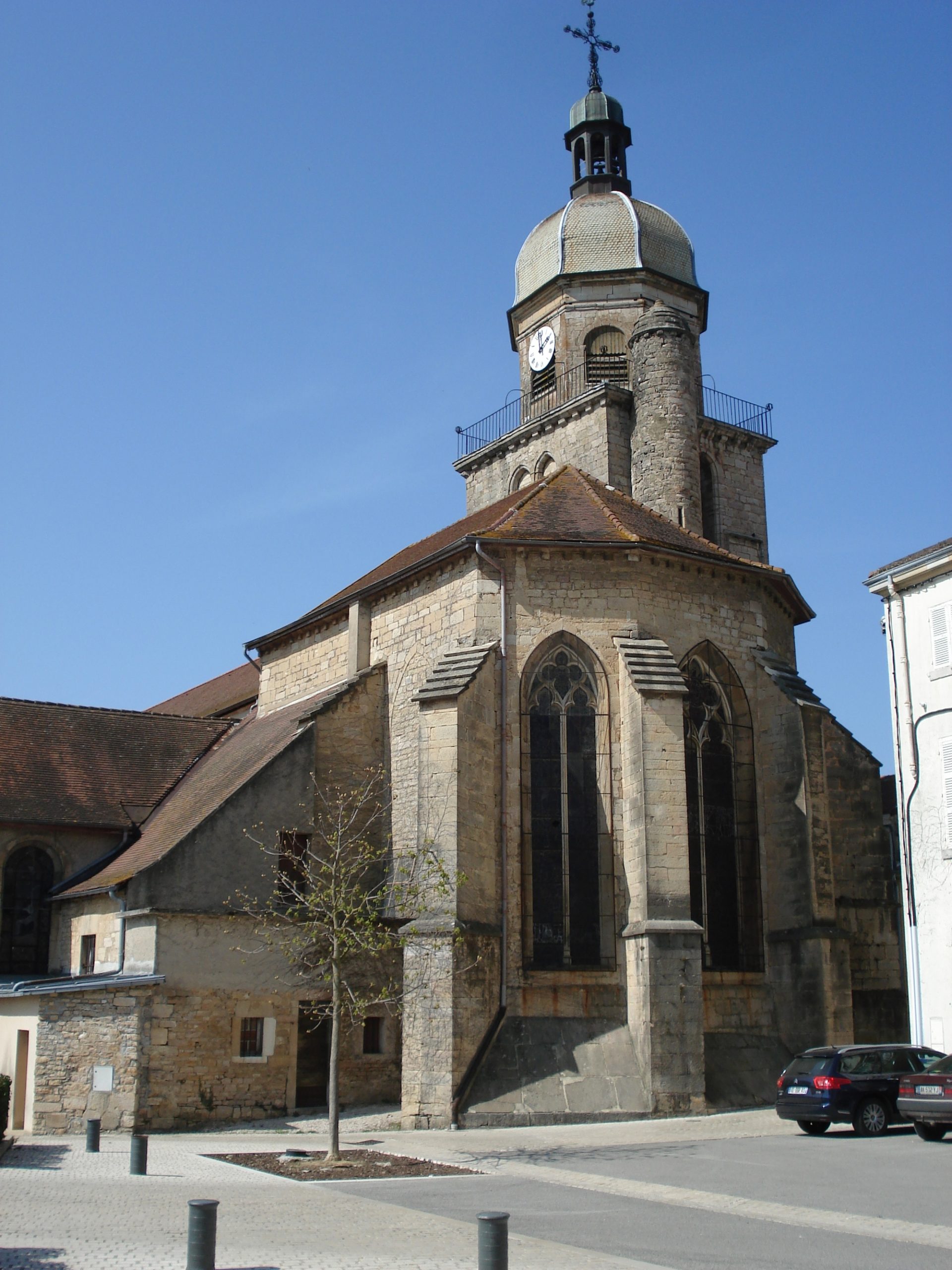 - Tour surmontée d’un clocher comtois, hauteur totale 48m