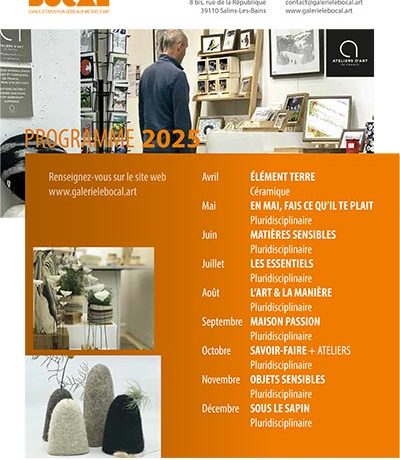 Le Bocal est un lieu d’exposition dédié aux métiers d’art. Sa programmation, d’avril à décembre, propose tous les mois un thème différent pour une mise en lumière des multiples facettes de l’artisanat.