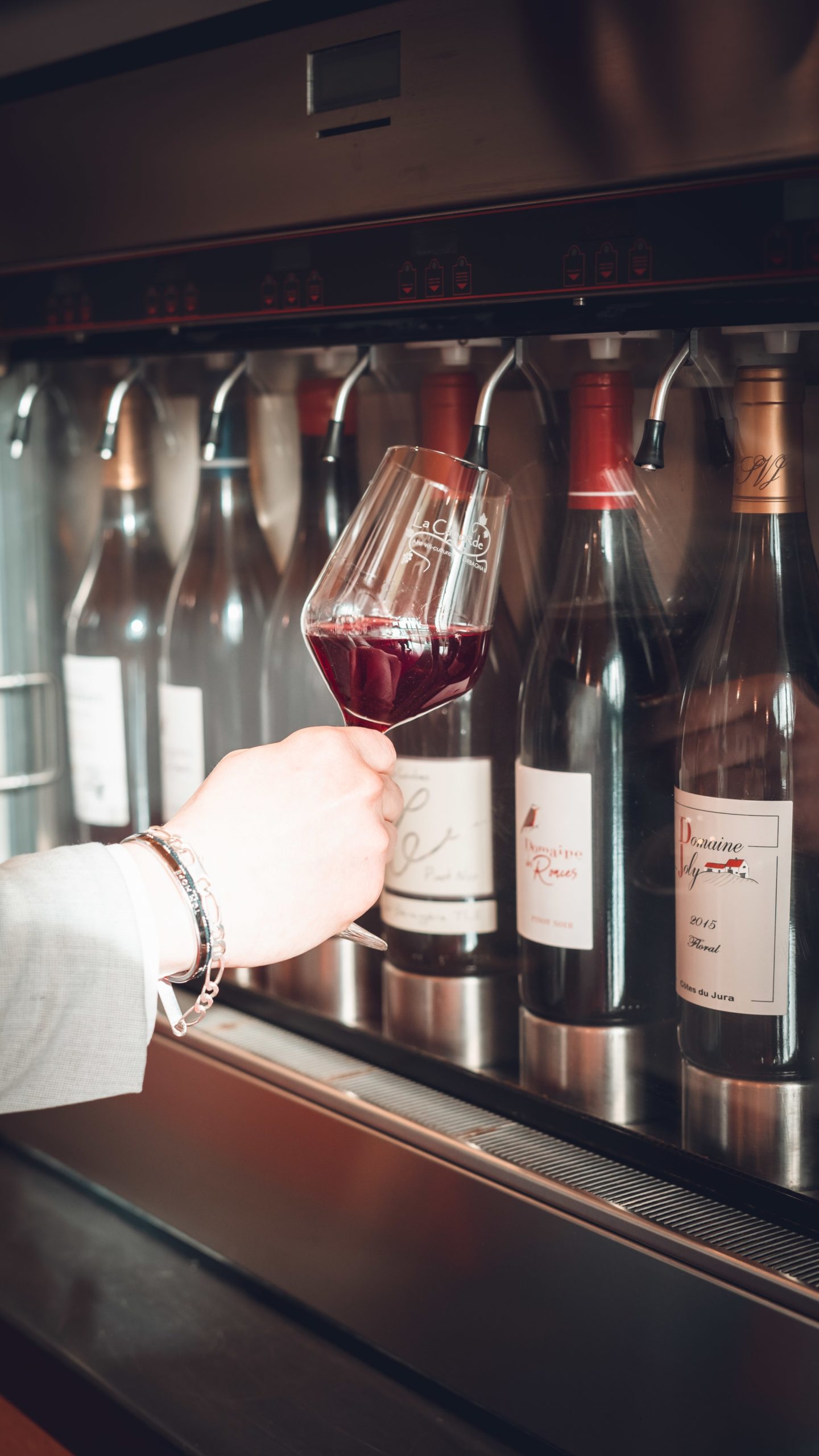 Afin de permettre de découvrir la diversité et la richesse de la production vinicole locale en zone d’appellation Cotes du Jura, La Caborde vous propose de gérer votre propre dégustation et de l’adapter en fonction de vos goûts et envies grâce à une fontaine à vin permettant de déguster au verre selon la sélection du moment.
