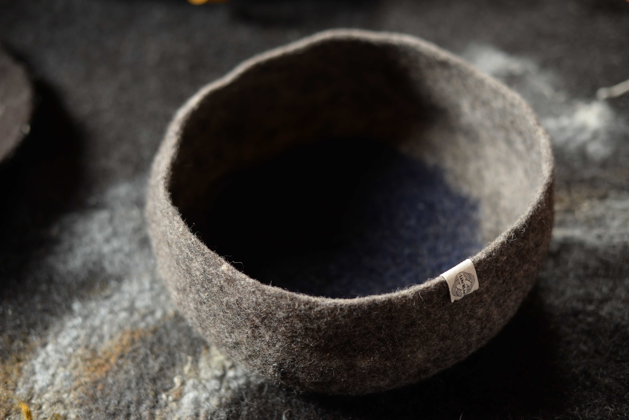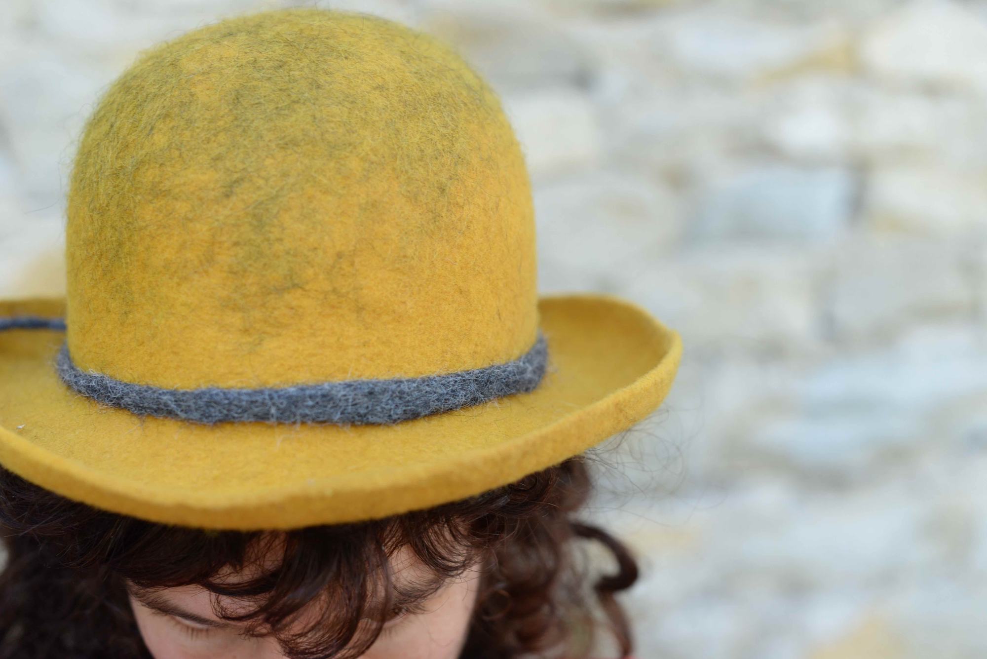 Créations en feutre de laine à partir de fibres naturelles et teintures végétales.