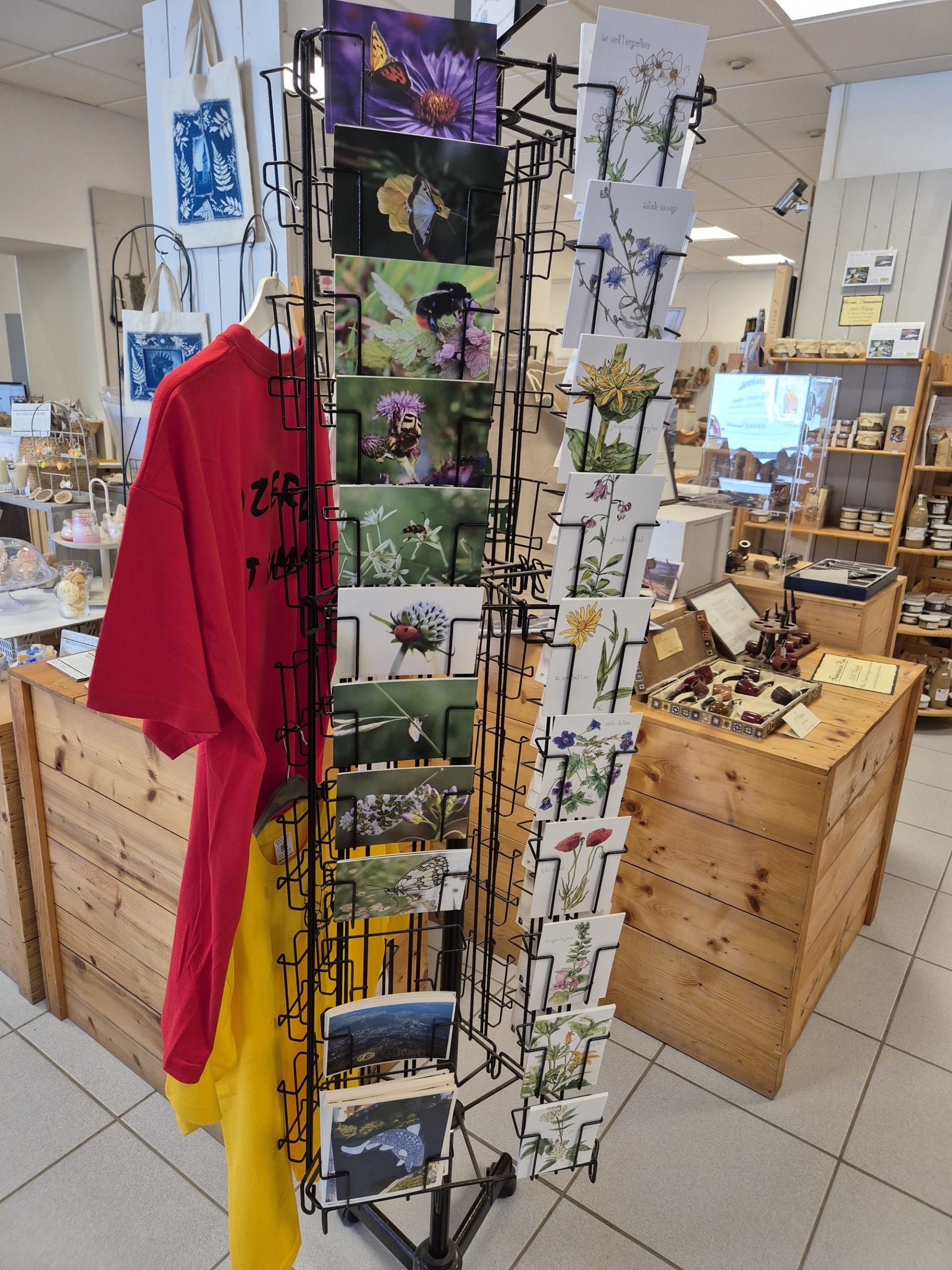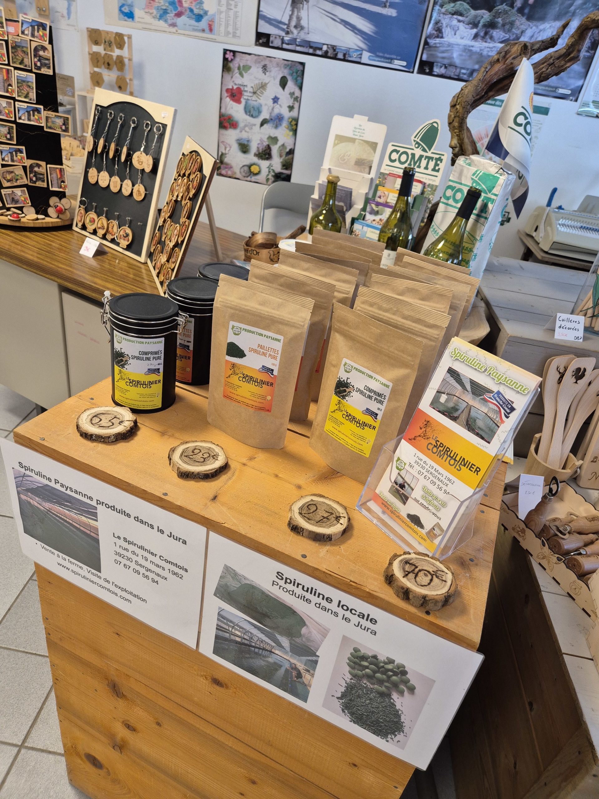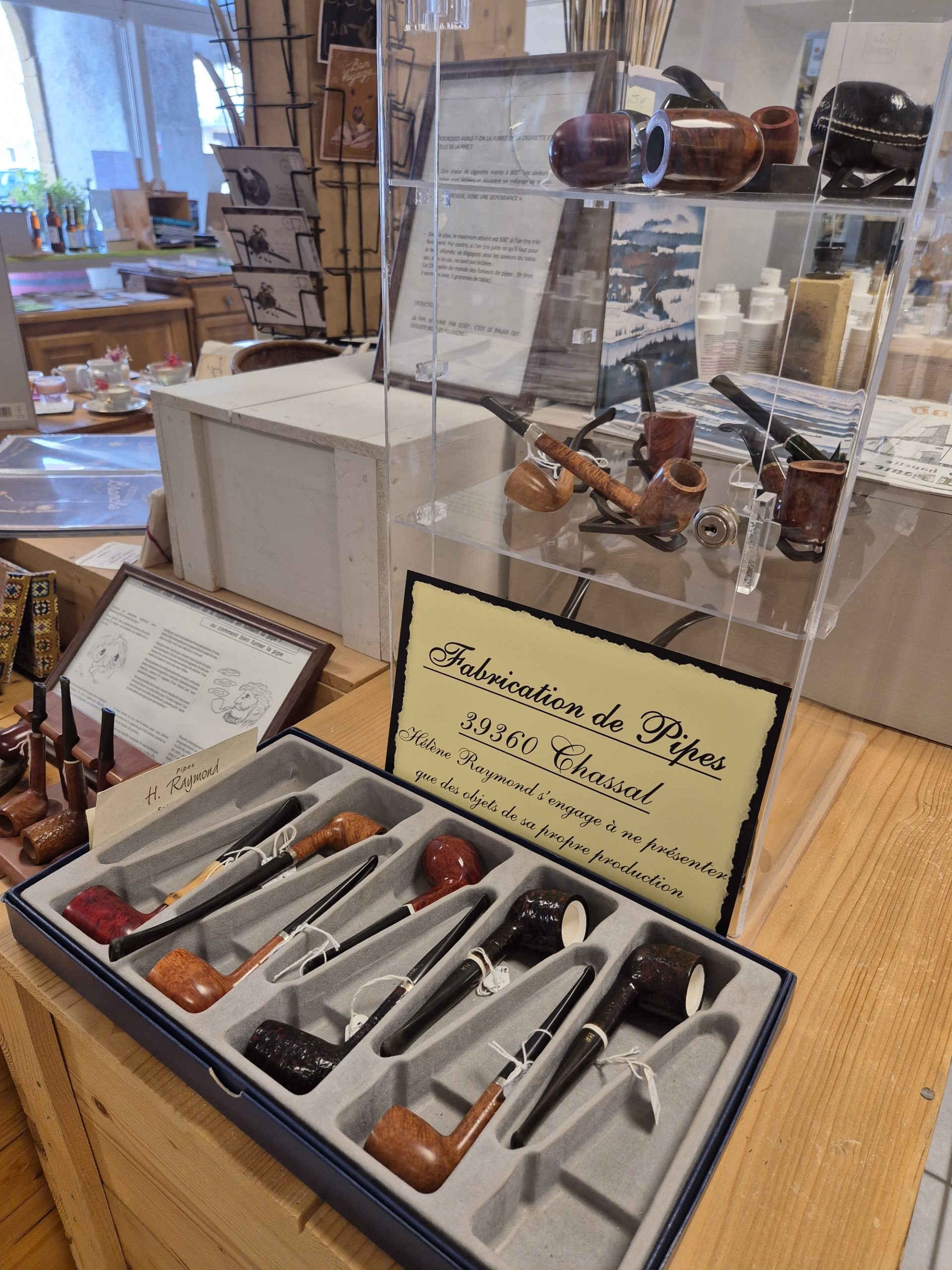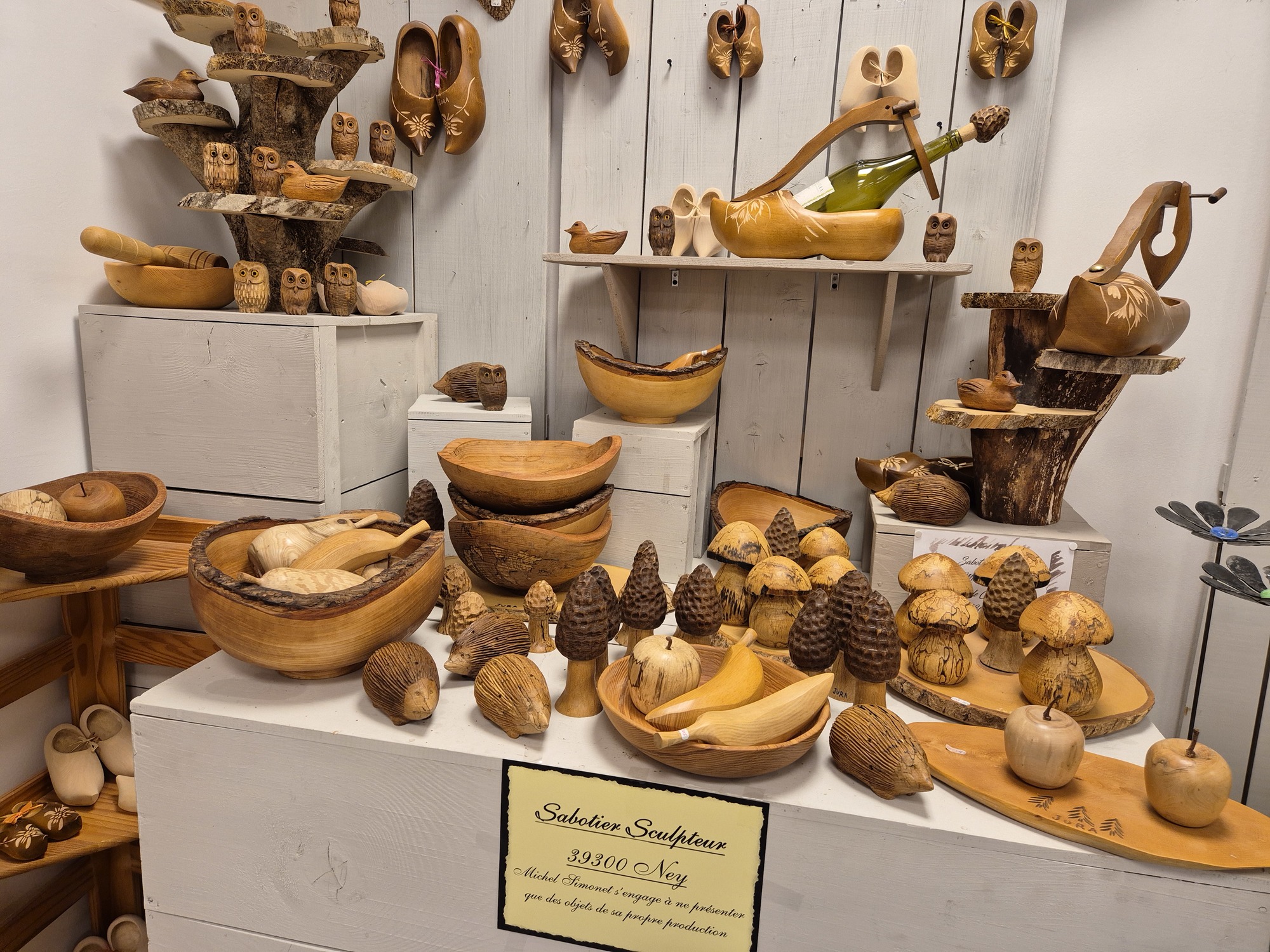 C'est le concept de ce magasin, qui expose des objets très diversifiés, mais qui ont un dénominateur commun : tous ont été fabriqués par un artisan jurassien, que celui-ci soit tourneur, potier, émailleur, lapidaire ou verrier. Alors... un jouet en bois, un bijou émaillé, une pipe ou un sac en cuir ? Mais on peut aussi craquer pour un produit de bouche, comme pour cette confiture d'abricots au basilic (un délice!), ou ce petit pot de confit de Vin Jaune...