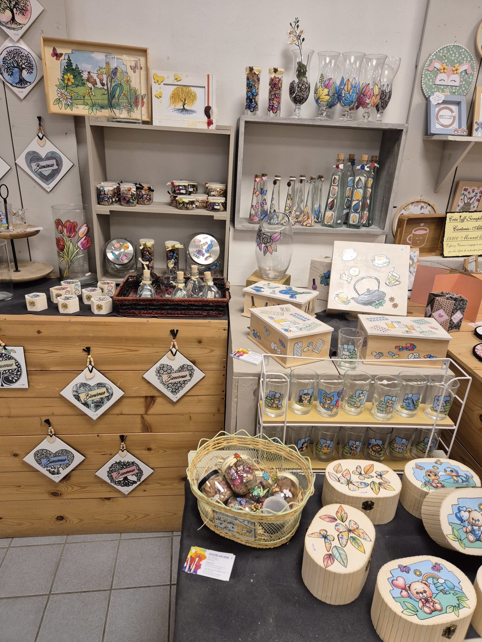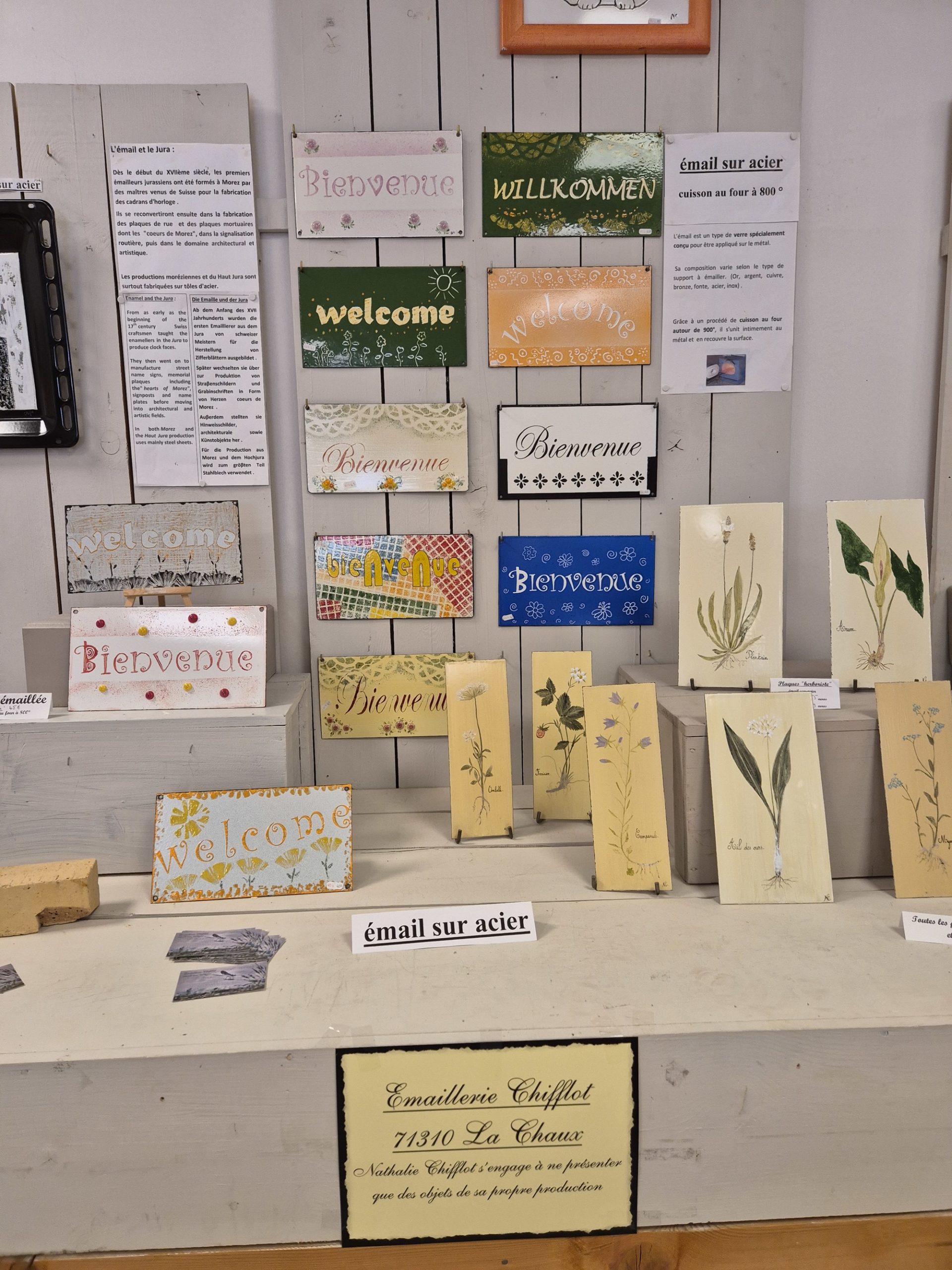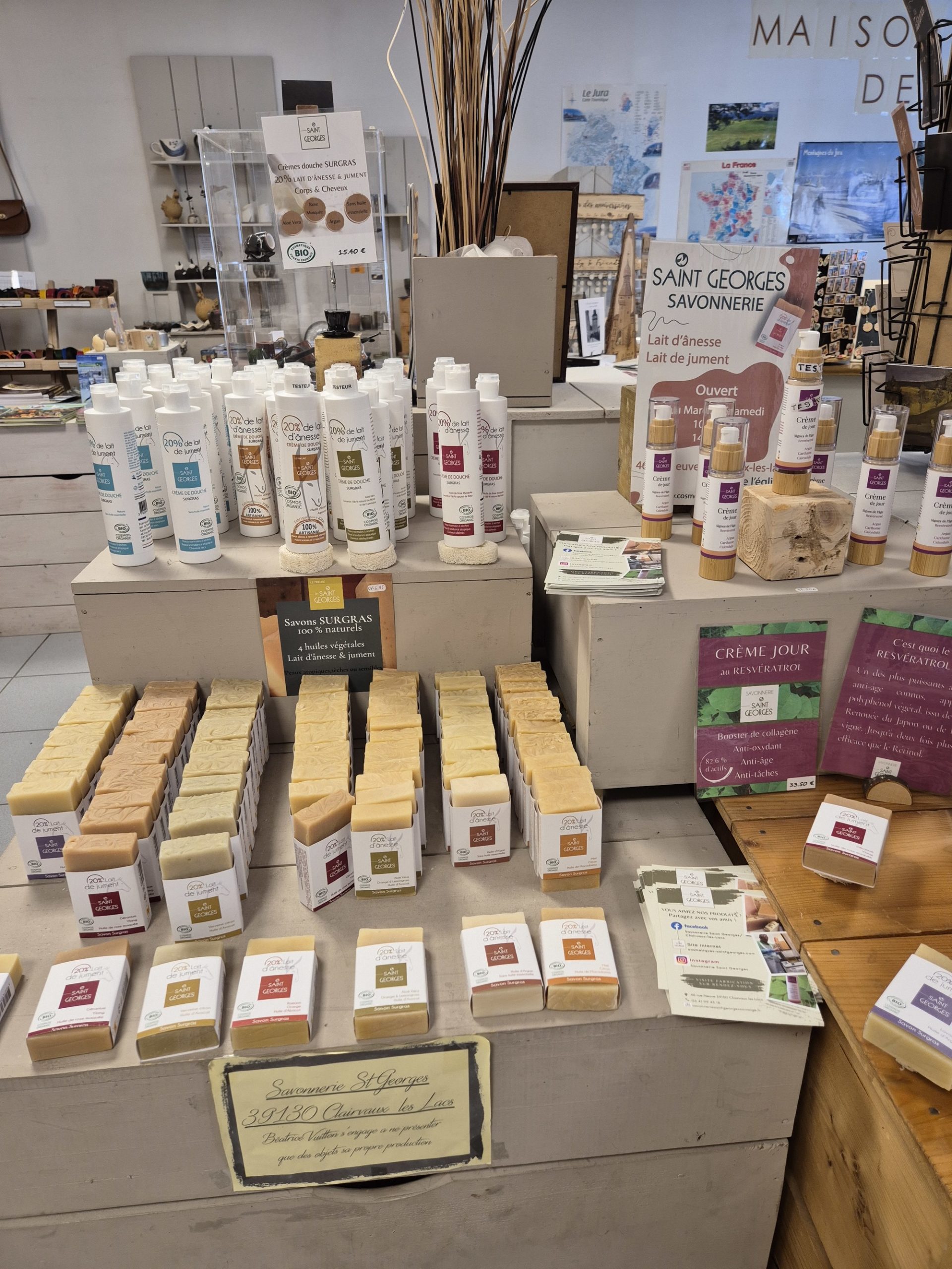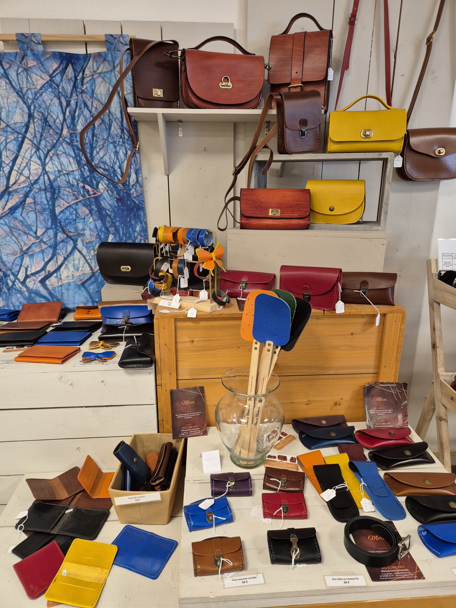 C'est le concept de ce magasin, qui expose des objets très diversifiés, mais qui ont un dénominateur commun : tous ont été fabriqués par un artisan jurassien, que celui-ci soit tourneur, potier, émailleur, lapidaire ou verrier. Alors... un jouet en bois, un bijou émaillé, une pipe ou un sac en cuir ? Mais on peut aussi craquer pour un produit de bouche, comme pour cette confiture d'abricots au basilic (un délice!), ou ce petit pot de confit de Vin Jaune...