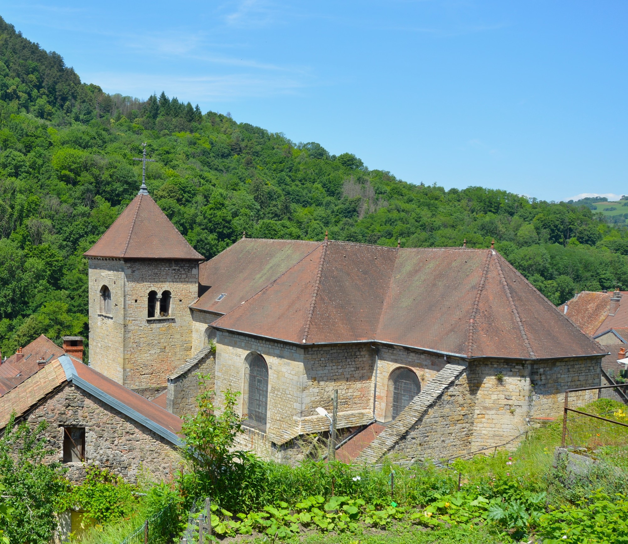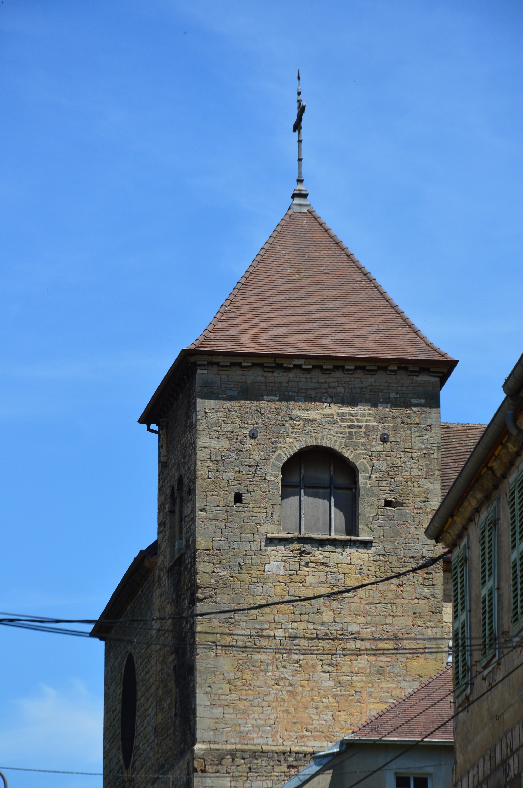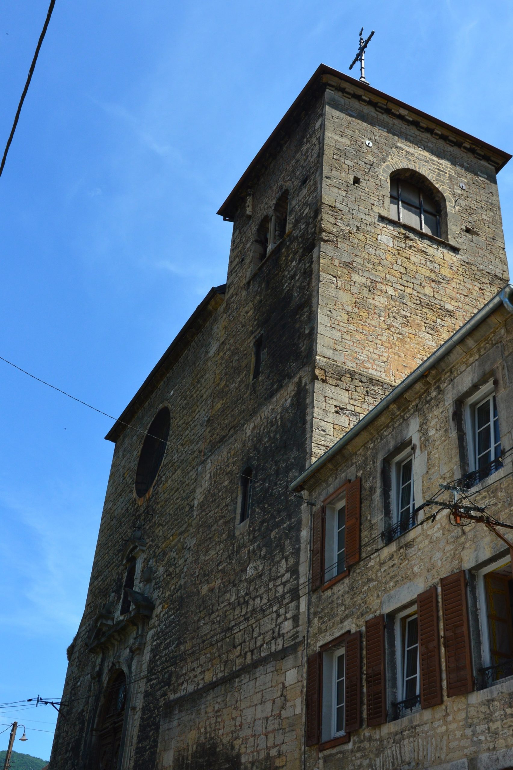 Reconstruite au début du XVIIIe siècle sur un édifice antérieur, l'église conserve à l'angle sud-ouest un clocher d'époque romane. Son plan, avec des chapelles communicantes flanquant une nef unique, un transept non débordant et un choeur peu profond, s'inspire de celui des églises romaines du XVIè siècle, dont le représentant le plus abouti est constitué par le Gesù, l'église mère des Jésuites. Comme beaucoup d'édifices de la ville, elle est victime du grand incendie de 1825 qui brûla l'orgue et sa tribune. Transformé en salle communale polyvalente en 1998, l'édifice a néanmoins conservé son grand retable en bois polychrome daté 1710, restauré en 1988, qui épouse les trois pans du chevet. Plusieurs oeuvres d'art, qui ornaient l'église, ont été déposées au musée de Slins par le diocèse de Saint-Claude; parmi celles-ci, une précieuse chasuble du XVIé siècle, la plus ancienne conservée du département du Jura, ainsi que les tableaux de "L'adoration des Mages" de Pieter Brughel le Jeune (1564-1637) et de "sainte Madeleine repentante" dû à Nicolas-Guy Brenet (1728-1792) et donné à la paroisse en 1780 par ce membre de l'Académie royale de peinture et de sculpture, en souvenir de son père originaire de Salins et baptisé ici en 1701.