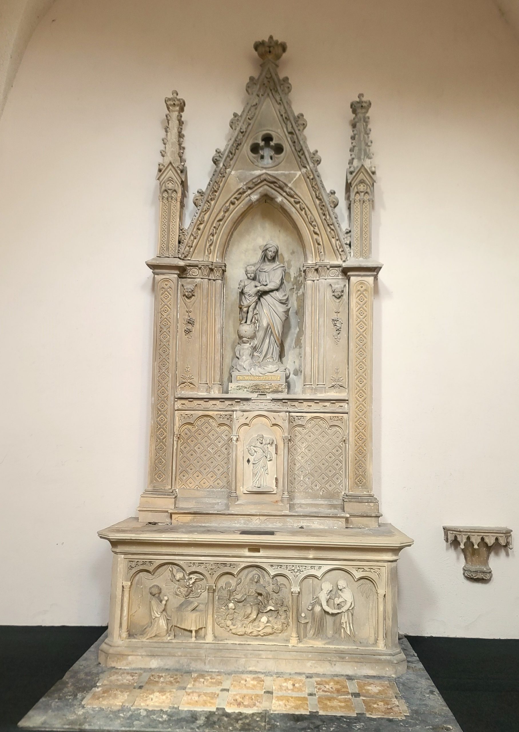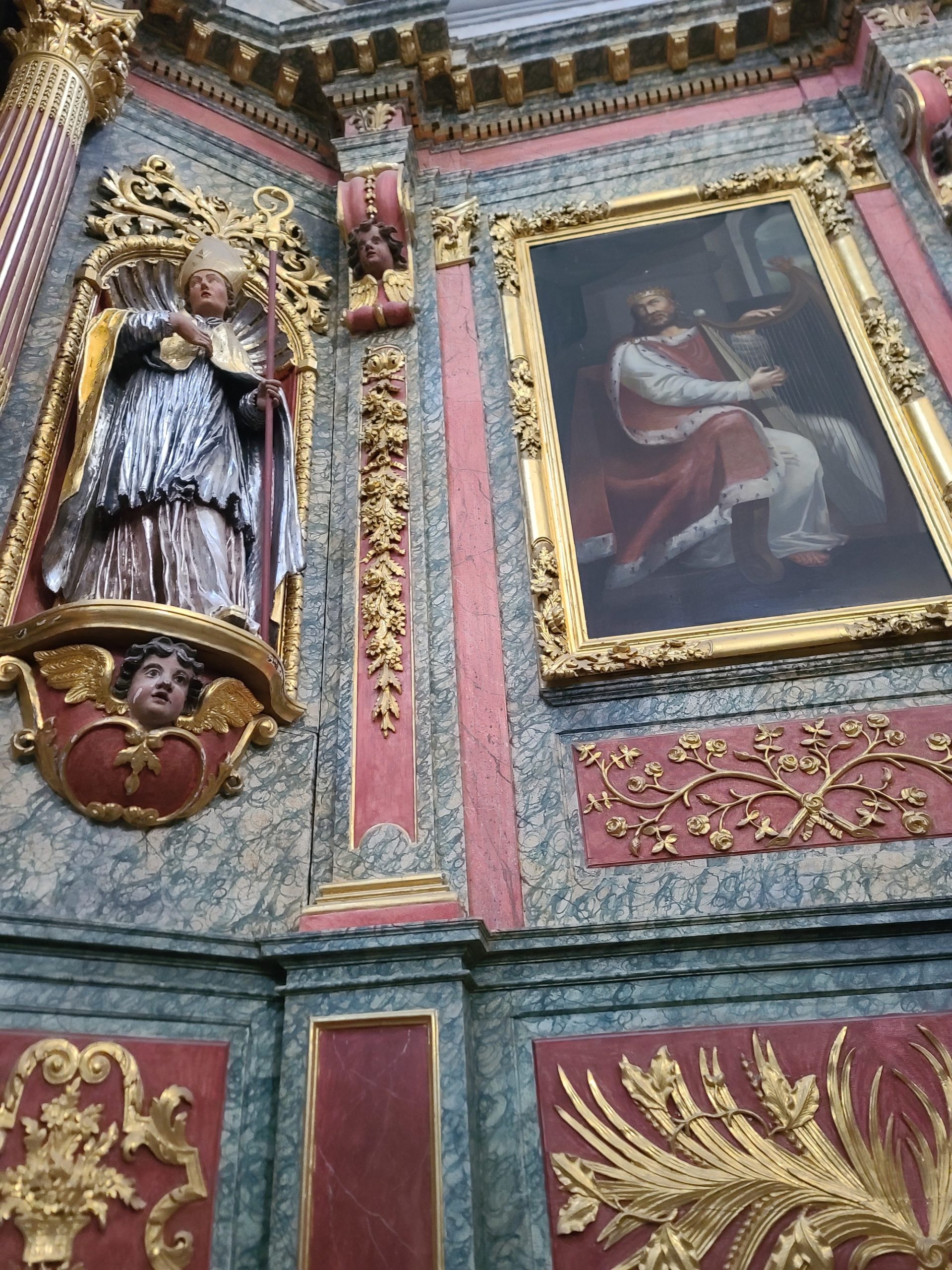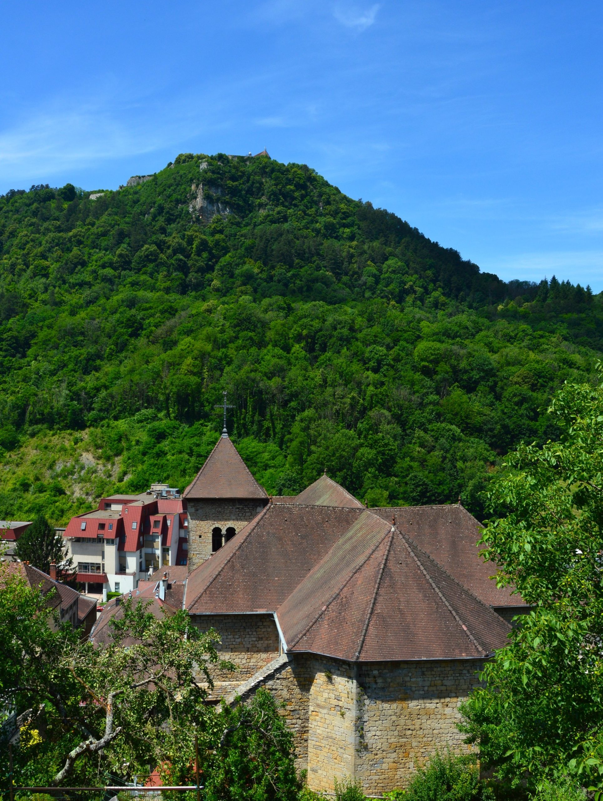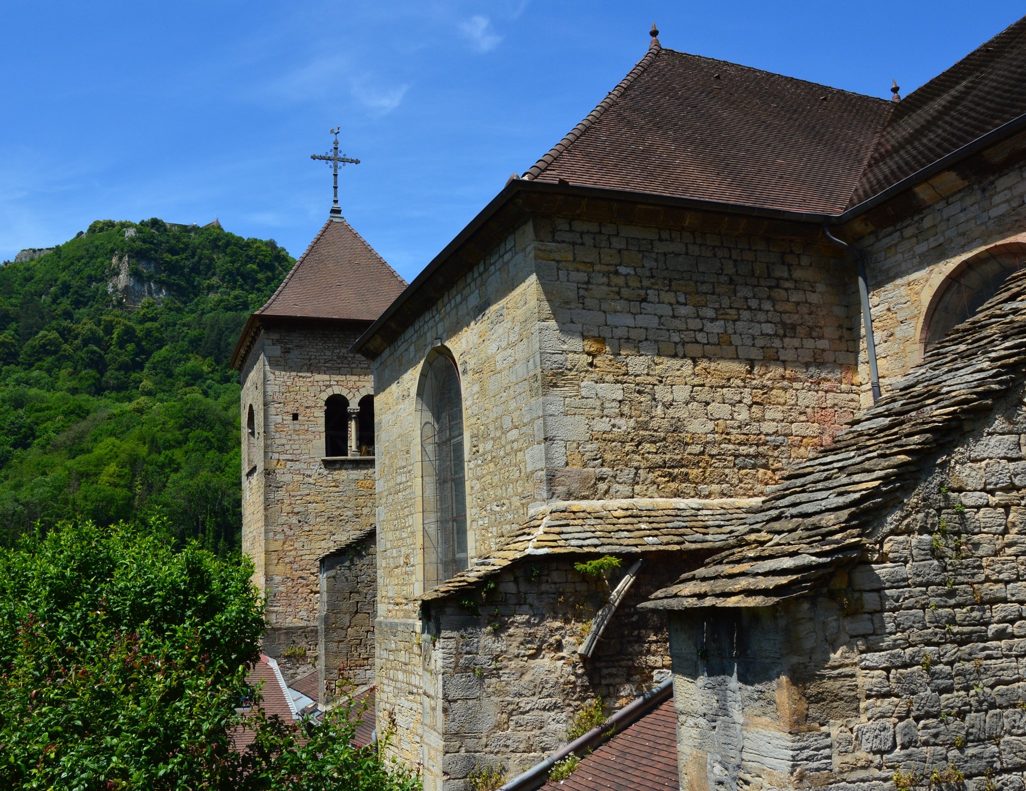 Reconstruite au début du XVIIIe siècle sur un édifice antérieur, l'église conserve à l'angle sud-ouest un clocher d'époque romane. Son plan, avec des chapelles communicantes flanquant une nef unique, un transept non débordant et un choeur peu profond, s'inspire de celui des églises romaines du XVIè siècle, dont le représentant le plus abouti est constitué par le Gesù, l'église mère des Jésuites. Comme beaucoup d'édifices de la ville, elle est victime du grand incendie de 1825 qui brûla l'orgue et sa tribune. Transformé en salle communale polyvalente en 1998, l'édifice a néanmoins conservé son grand retable en bois polychrome daté 1710, restauré en 1988, qui épouse les trois pans du chevet. Plusieurs oeuvres d'art, qui ornaient l'église, ont été déposées au musée de Slins par le diocèse de Saint-Claude; parmi celles-ci, une précieuse chasuble du XVIé siècle, la plus ancienne conservée du département du Jura, ainsi que les tableaux de "L'adoration des Mages" de Pieter Brughel le Jeune (1564-1637) et de "sainte Madeleine repentante" dû à Nicolas-Guy Brenet (1728-1792) et donné à la paroisse en 1780 par ce membre de l'Académie royale de peinture et de sculpture, en souvenir de son père originaire de Salins et baptisé ici en 1701.