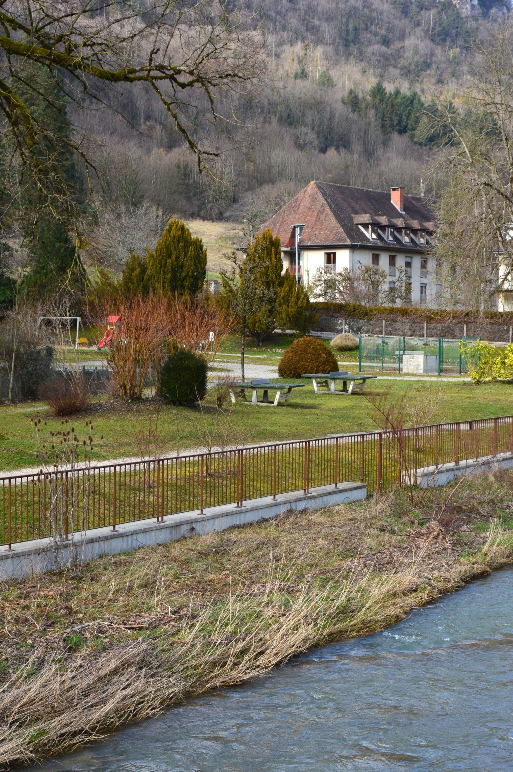 Une table et plusieurs bancs sont à disposition ainsi que des jeux pour enfants.