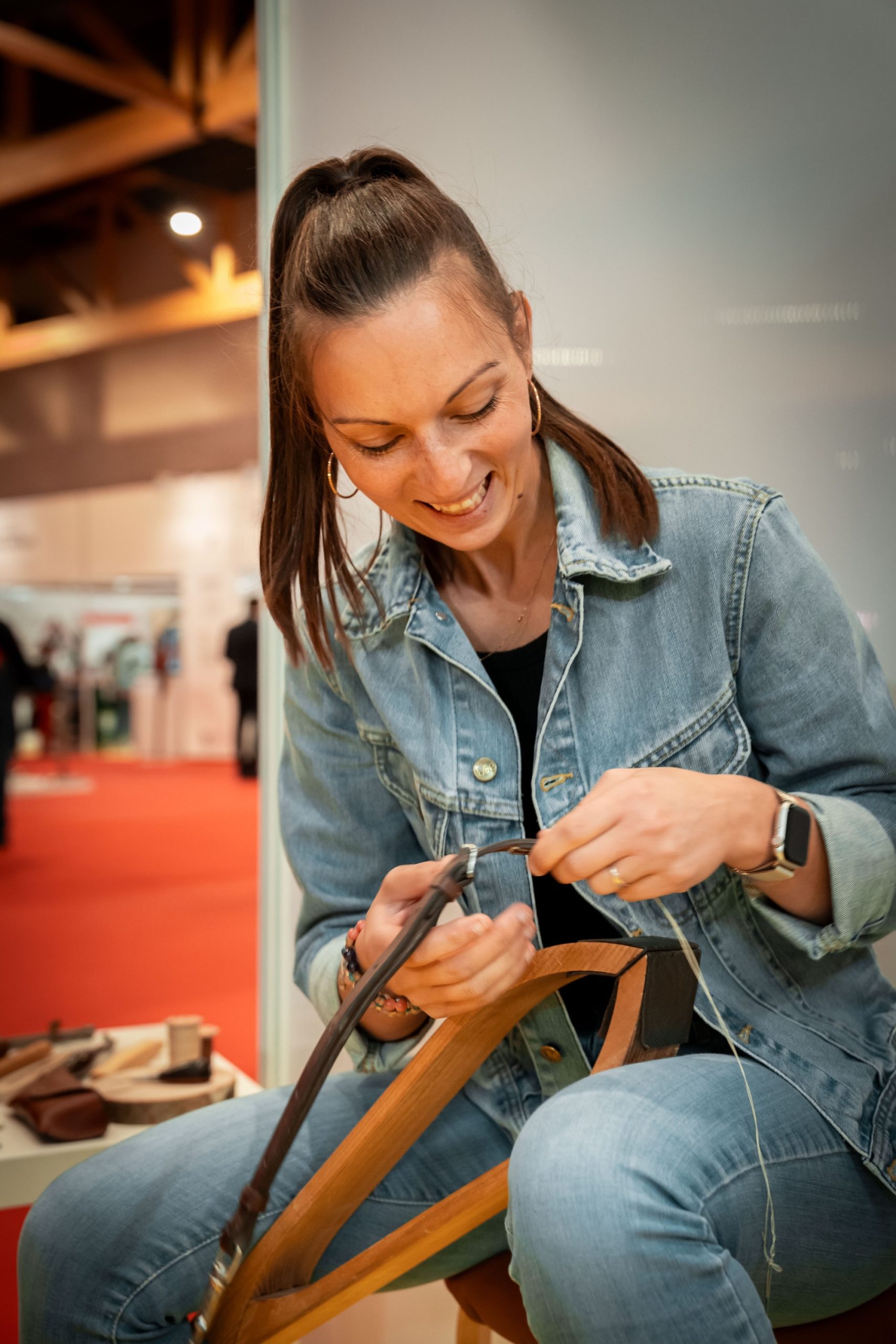 Son métier est le travail du cuir principalement des pièces d’harnachement pour les chevaux, les chiens. Elle réalise également des articles de petite maroquinerie (sac , ceinture…) et confectionne des créations sur-mesure afin de répondre à des critères spécifiques d’adaptation et de confort pour le couple cavalier/cheval.