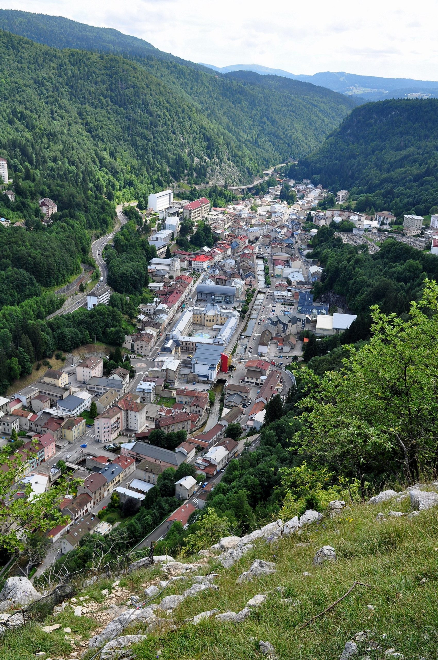 La Roche au Dade domine la ville de Morez à son extrémité nord. Ce belvédère se trouve presque dans l’axe de la vallée de la Bienne et il permet de voir comment la ville s’est développée d’abord sur les bords de la rivière et n’a installé que très récemment des quartiers sur les versants. La Roche au Dade offre une vue étonnante sur la cluse de Morez et la ligne des Hirondelles, une des plus belles lignes ferroviaire de France.