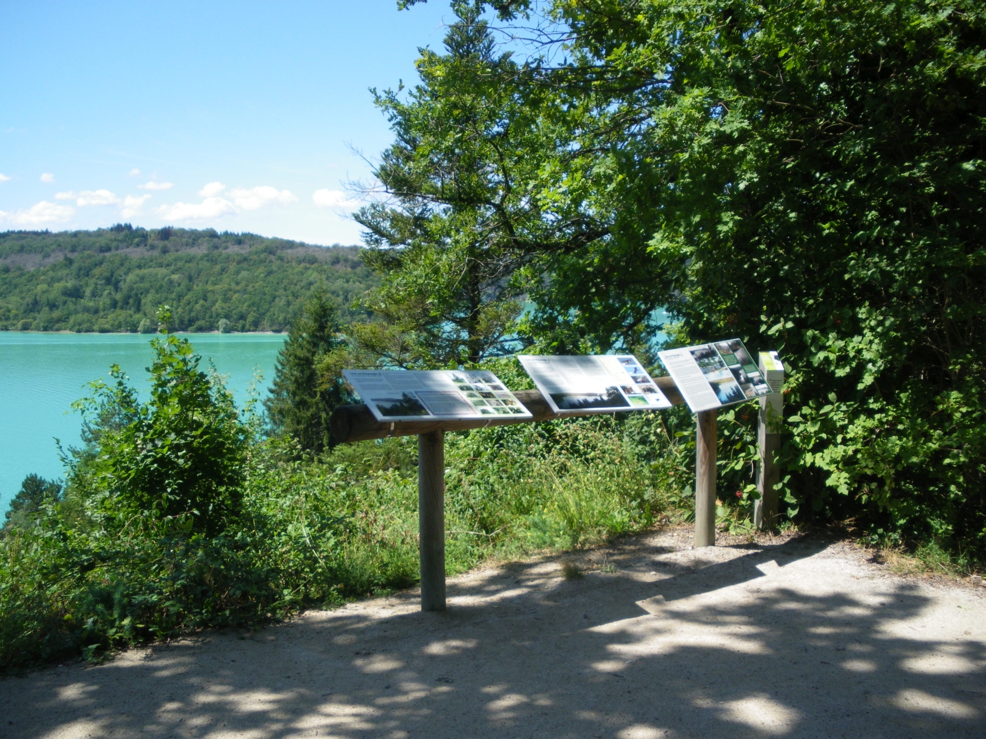 Belvédère avec table d'interprétation du paysage et une jolie vue sur le lac. Accessible en voiture : sur la gauche, au bord de la route des lacs, entre Maisod et le Pont de la Pyle.