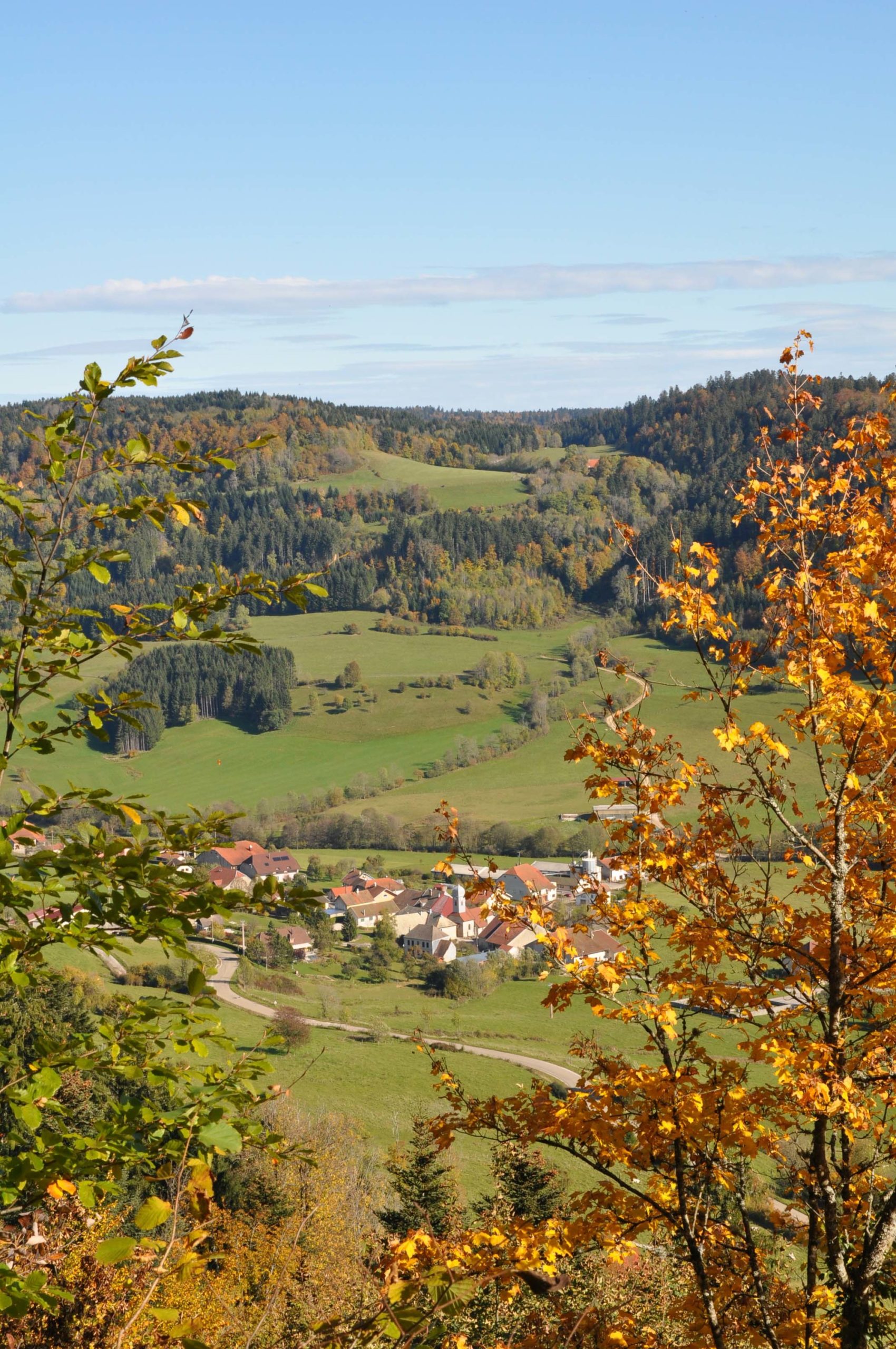 À 888 mètres d’altitude, il offre une vue à 180° sur la vallée des Nans, mais également sur le « plateau de Nozeroy » et les sommets d’arrière-plan : à gauche la montagne du Laveron (Doubs) et les aiguilles de Baulmes (Suisse), à droite le massif de la Haute Joux. Lorsque la météo s’y prête, on peut même distinguer le Mont Blanc !