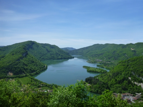 A proximité de Montcusel, en direction de Chancia, très belle vue sur la vallée de l’Ain et la retenue de Coiselet. Site d’observation ornithologique. Accessible en voiture.