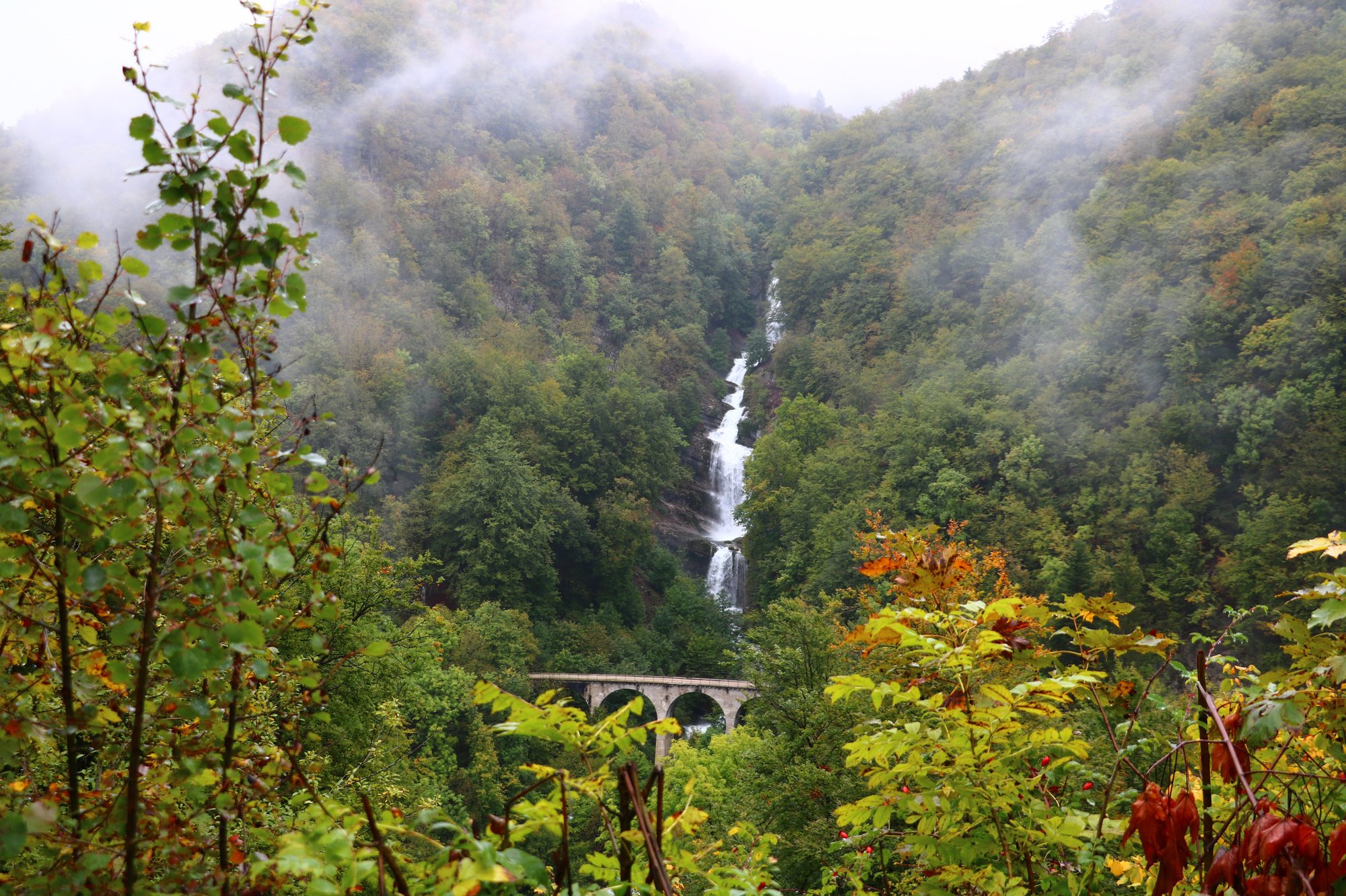 Ce pont, sur lequel le Tram reliant Champagnole à Foncine-le-Bas a circulé jusqu’en 1950, permet à présent aux visiteurs de profiter d’un point de vue privilégié sur la cascade et les gorges.
