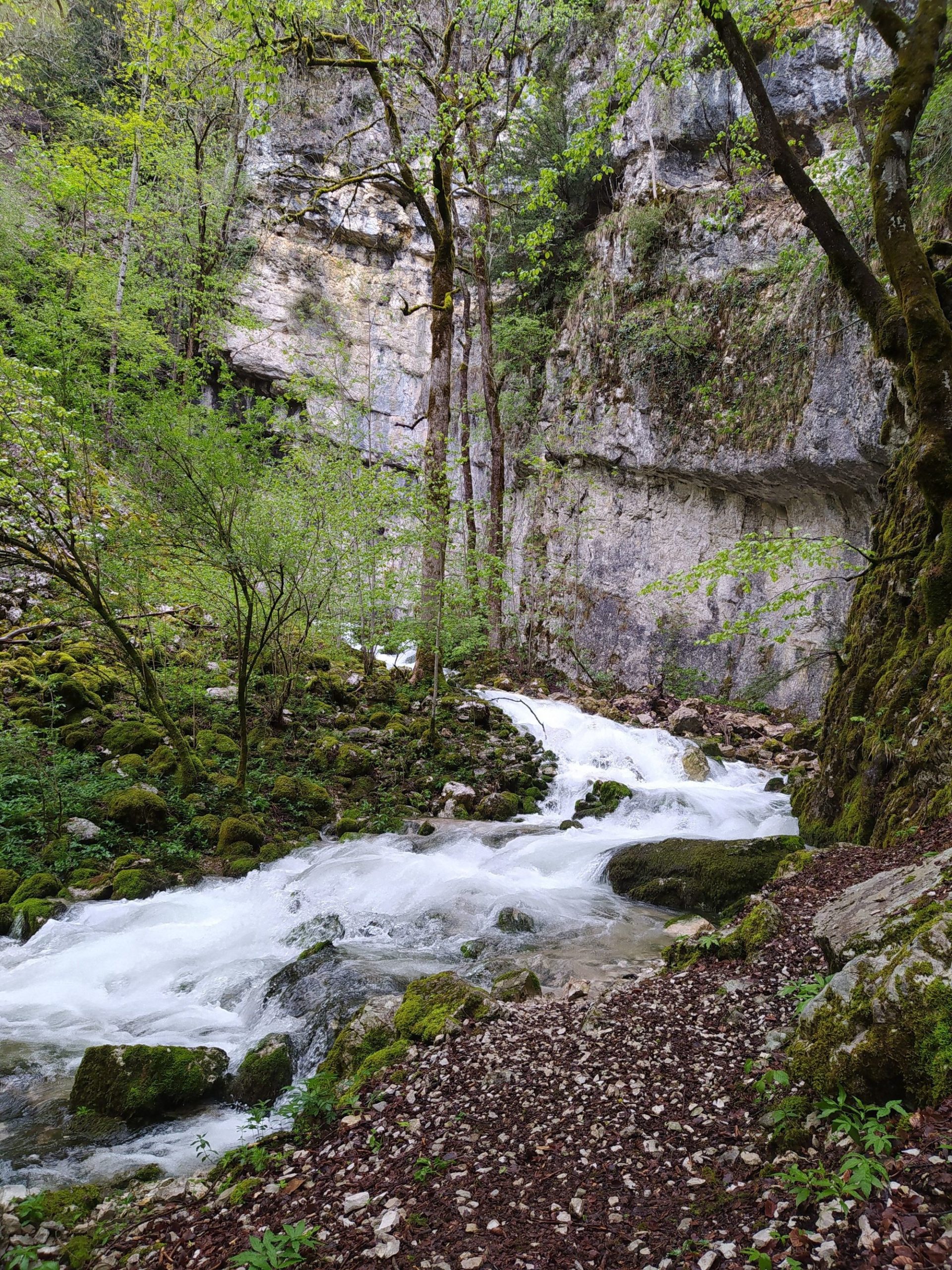 C’est au cœur d’un cirque calcaire que se trouve sa source. Issu du même lac souterrain que la Saine, le cours d’eau chemine sous le Bayard avant de jaillir, parfois de manière très brutale, sous le porche rocheux. Il se compose d’une succession de curiosités naturelles remarquables dont le Creux des Joyaux, accessible par le lit du ruisseau lorsque le niveau d’eau le permet (Attention : vous pouvez être surpris par l’arrivée brutale de l’eau et les chutes de pierres sont fréquentes. Interdiction de s’y rendre en cas de crue).
