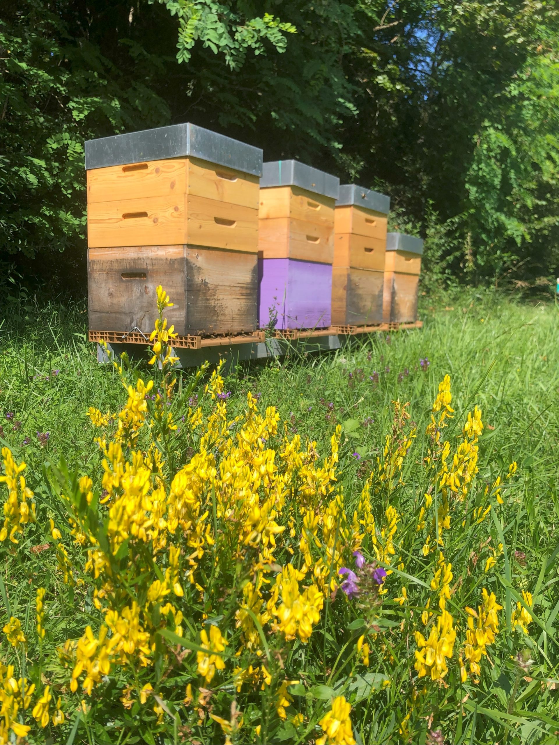 Ici tout est 100% local et artisanal : de la fabrication des ruches en épicéa du Haut Jura jusqu'à la mise en pot de la récolte, tout est mené avec passion.
