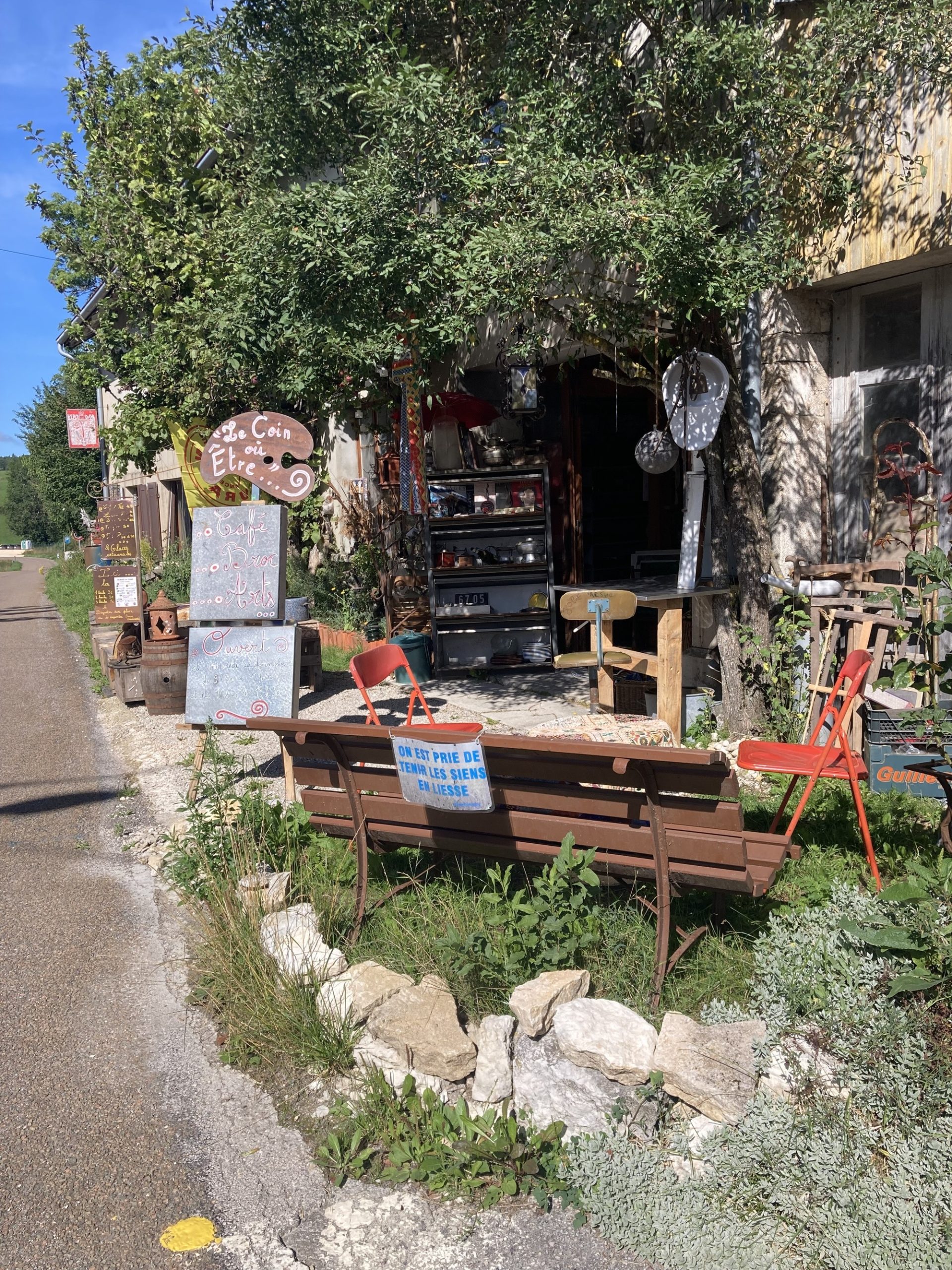Café, boissons fraîches et glaces artisanales du Jura, brocante, art et artisanat du coin et d’ailleurs… produits locaux et artisanaux (miel du Jura et jus petits fruits) , point d’eau et pain pour les randonneurs et cyclistes.