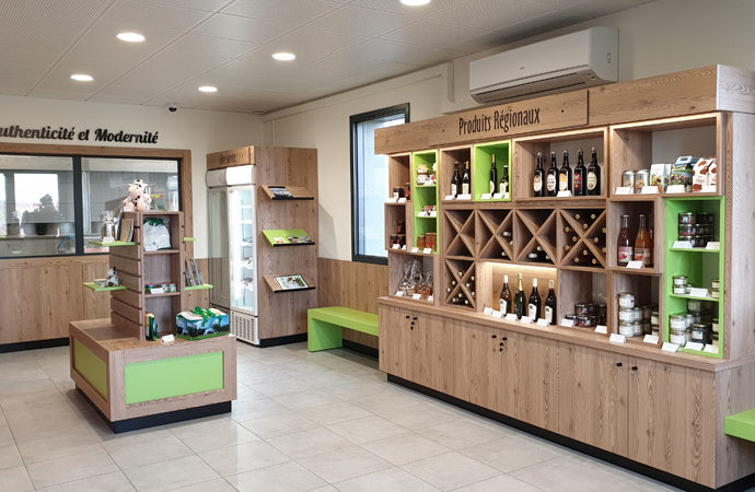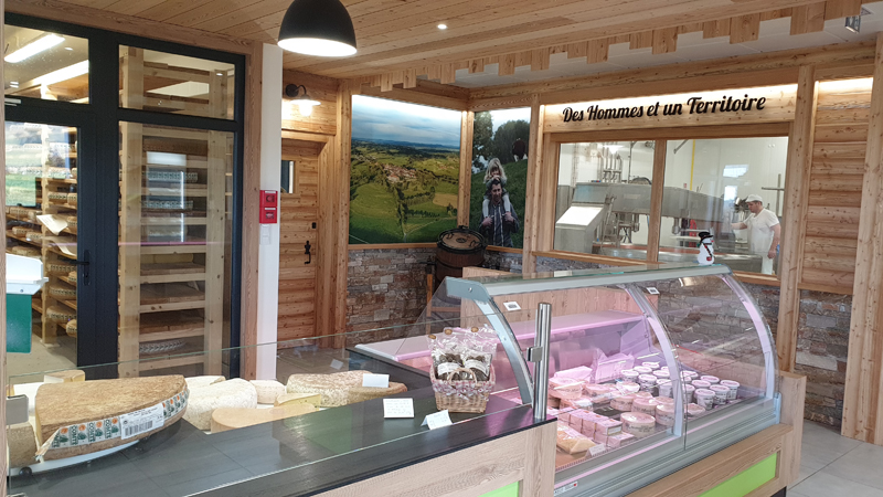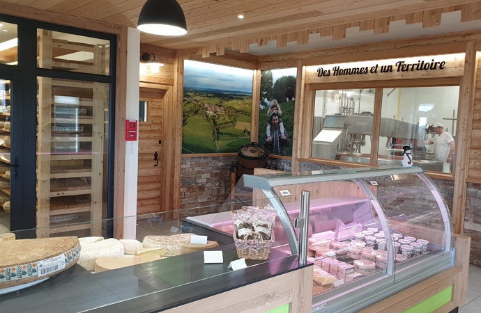Pour les accompagner, une sélection de salaisons et de boissons locales complètent la boutique. Un plus : la vue panoramique sur la salle de fabrication depuis le magasin, qui permet ainsi aux visiteurs d'admirer le savoir-faire des fromagers.