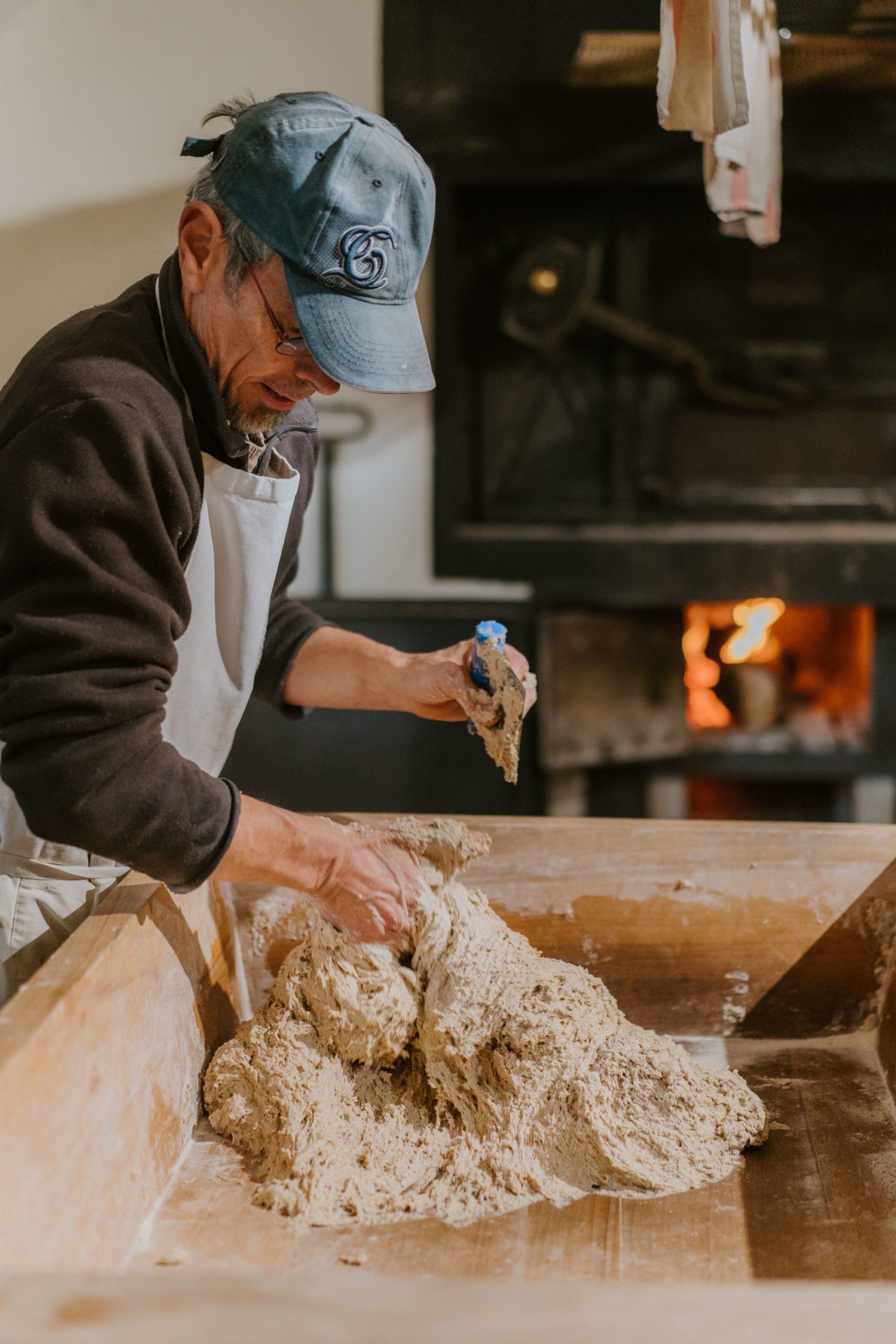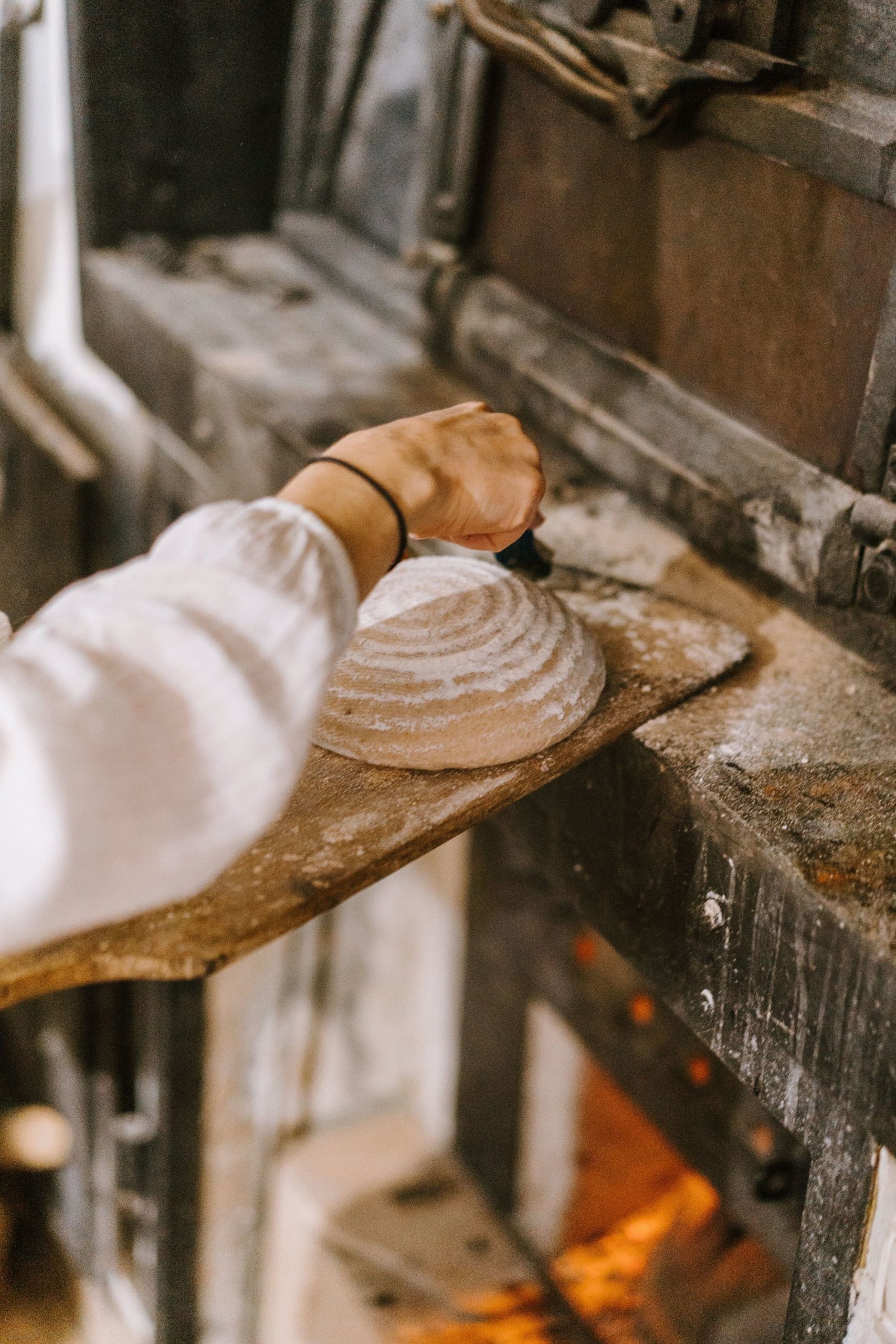 Nous fabriquons sur meules de pierre entrainées par l'eau des farines de blé bio et de gaudes que nous proposons à la vente. Avec ces farines nous fabriquons du pain à l'ancienne : pétri à la main au pur levain naturel et cuit sur place au feu de bois. Dans notre four cuit aussi une gamme de sablés (aux gaudes!) et de pâtisseries variables selon les saisons. Boulangers à la maison en quête de bonne farine, amateurs de bons pains et gourmands nostalgiques, venez trouver votre bonheur!