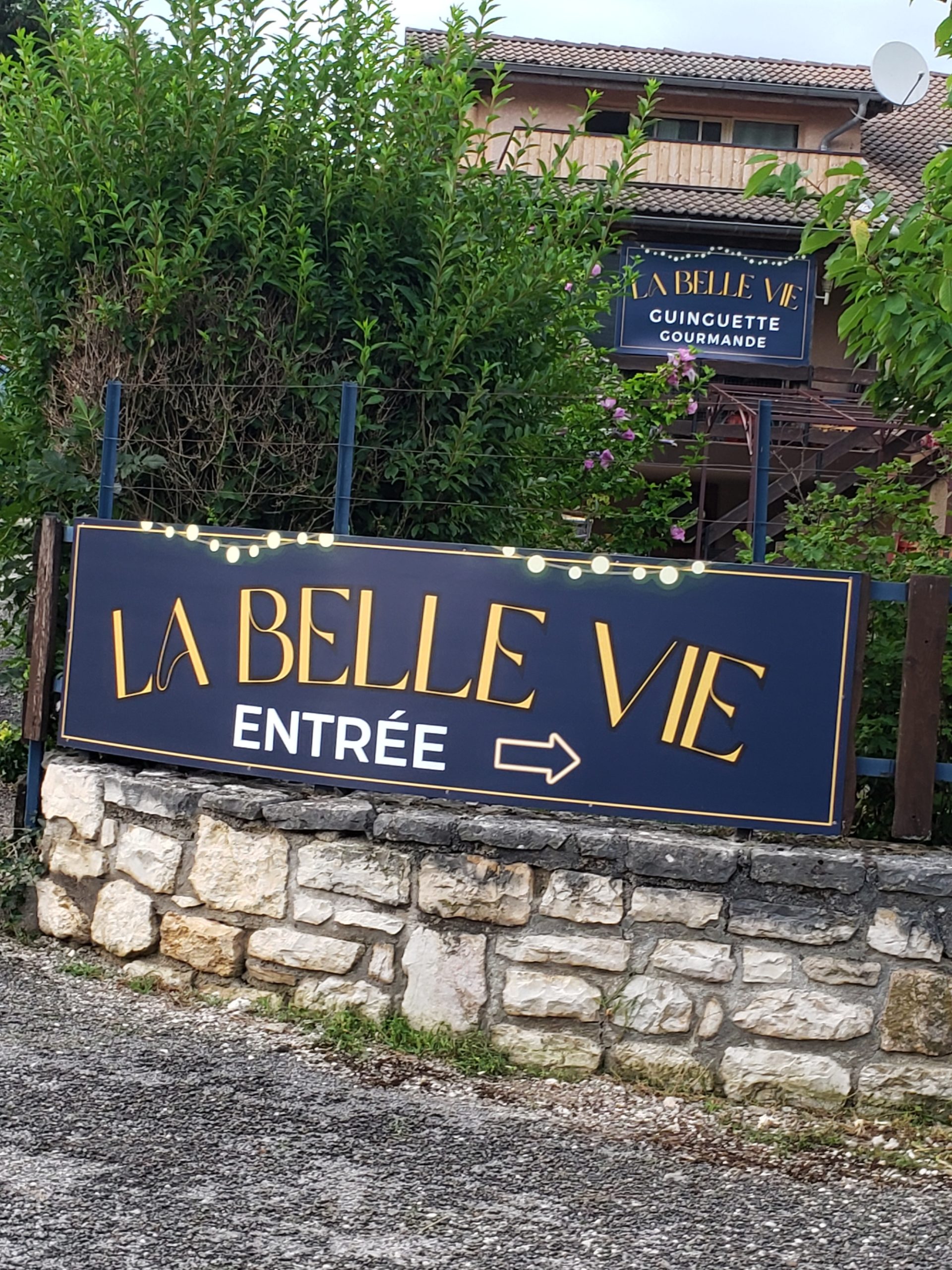 Le restaurant guinguette La Belle Vie vous accueille en extérieur, dans un cadre verdoyant, à proximité de la rivière d'Ain avec une très belle vue sur la Petite Montagne. Cuisine maison, produits de qualité. Fruits de mer à la plancha, viande fumée, salades fraîcheur, frites fraiches. Esprit familial et convivial. Aire de jeux pour les enfants à proximité et location de canoë et paddle à 100m. Parking gratuit.