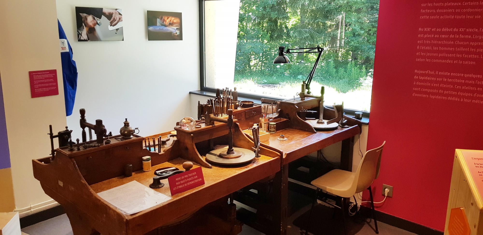 Une guide passionnée vous contera comment est née la taille de la pierre précieuse dans ces petits villages enneigés et toute l’économie qui en a découlée. Les réalisations de plusieurs Meilleurs Ouvriers de France vous éblouiront par leur détail.