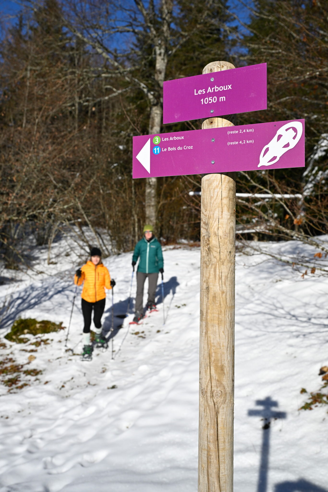 Datant de 2007 et de couleur jaune, le balisage des itinéraires raquettes passe à la couleur violette pour répondre à la nouvelle norme française. Cette refonte du balisage, pilotée par l’Espace Nordique Jurassien, est l’occasion d’une évolution plus large de l’encadrement de cette pratique prisée, avec notamment une amélioration des sites d’accueil, des services et des cartographies.